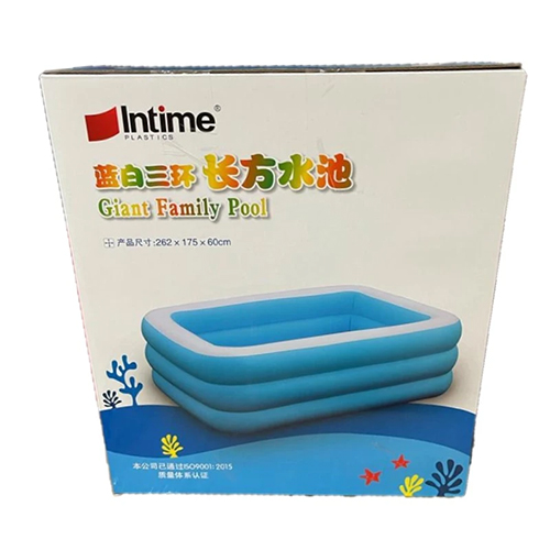استخر بادی سایز بزرگ اینتایم intime yt311 جزو استخرهای بادی باکیفیتی است که شرکت اینتایم با یک بدنه ضخیم و بادوام اقدام به تولید و ارائه آن کرده است. در همین راستا باید اشاره کنیم که این استخر بادی دارای ساختاری مستطیلی شکل می باشد که این ساختار باعث شده تا یک استخر بزرگ و زیبا را در اختیار داشته باشید که با بدنه ای ساده و در عین حال جذاب در اختیار شما عزیزان قرار می گیرد.از نظر نوع طراحی و ظاهر بدنه شما می توانید یک بدنه آبی رنگ را مشاهده کنید که این رنگ آبی تشکیل دهنده بخش های داخلی و بیرونی این محصول بوده و تنها رنگ سفید نیز بر روی لبه اصلی این محصول قابل رویت می باشد. علاوه بر این ها ساختار اصلی بدنه این استخر سه لایه بوده که به صورت یکسان بر روی هم قرار گرفته است.