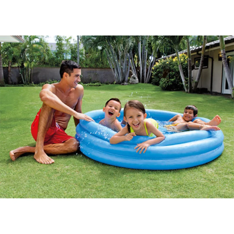 استخر بادی کودک اینتکس آبی سه حلقه یکی از سری محصولاتی است که در عین سادگی در طراحی و ظاهر ، محصولی محبوب و ایده آل به شمار می رود که شما با خرید آن می توانید محیطی ایده آل را برای بازی و تفریح کودک خود فراهم کنید. در همین راستا باید اشاره داشته باشیم که این محصول همان طور که از ظاهرش پیداست ساختاری گرد و ساده دارد که از رنگ آبی نیز طراحی و تولید شده است. در واقع بدنه آبی رنگ این استخر بادی باعث شده تا شما بتوانید به بهترین شکل ممکن یک محصول عالی را در اختیار کودک خود قرار دهید که مزیت بزرگ این محصول نیز به شمار می رود. هم چنین باید اشاره داشته باشیم که قطر اصلی این محصول نیز 168 سانتی متر است که در میان گزینه های گرد و استخرهای بادی کودک یک قطر نسبتا بزرگ به شمار خواهد آمد.
