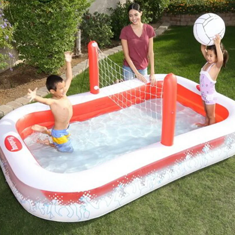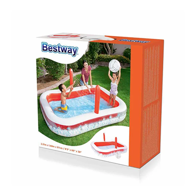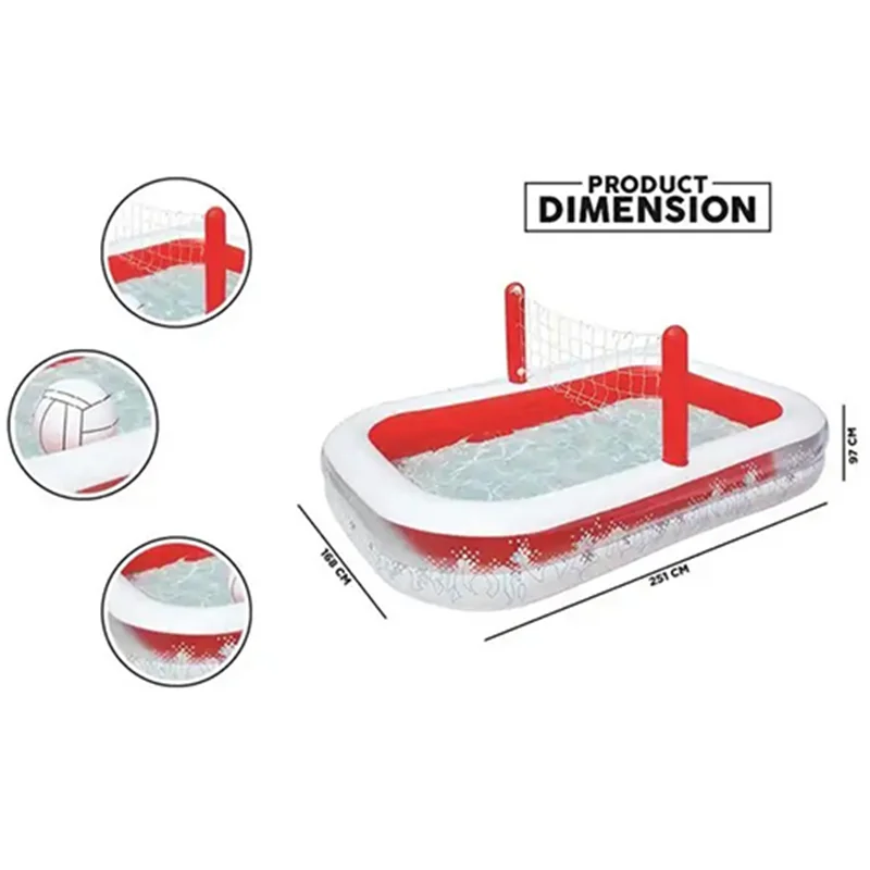 استخر بادی کودک با تور والیبال bestway 54125 را به جرات می توان یکی از استخرهایی نامگذاری کرد که هم از نظر کیفیت و هم از نظر کارایی توانسته با خیالی راحت نیاز مشتریان را برطرف سازد. در همین رابطه باید اشاره داشته باشیم که این محصول دارای یک بدنه طرح دار است که همین عامل باعث شده تا این کالا برای کودکان بسیار مهیج شود. در واقع اگر با دقت به تصاویر این محصول نگاه کنید متوجه خواهید شد که دور تا دور این کالا با بهره گیری از رنگ سفید و در کنار آن نیز رنگ قرمز شکل گرفته که باعث شده تا شما جلوه ای فوق العاده زیبا از این محصول را مشاهده کنید. هم چنین باید اشاره داشته باشیم که این استخر بادی دور تا دور خود در کنار این رنگ ها ، یک سری طرح هم نقش بسته است که در واقع شما میتوانید طرح اشخاص مختلف را مشاهده کرده و در واقع جلوه ای از تماشاگران والیبال را می توانید ببینید که باعث شده تا شما با خیالی راحت و آسوده خرید و انتخاب این محصول را انجام دهید.