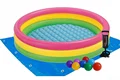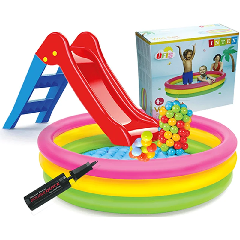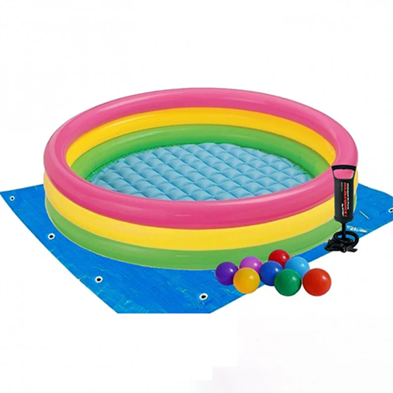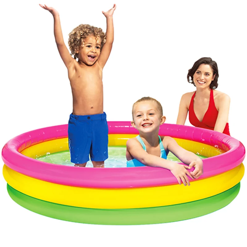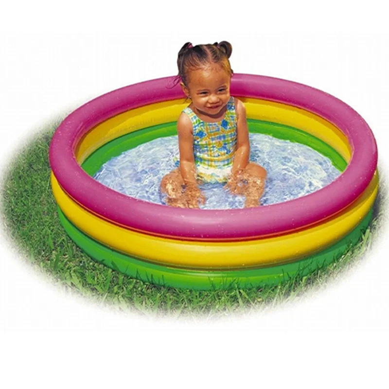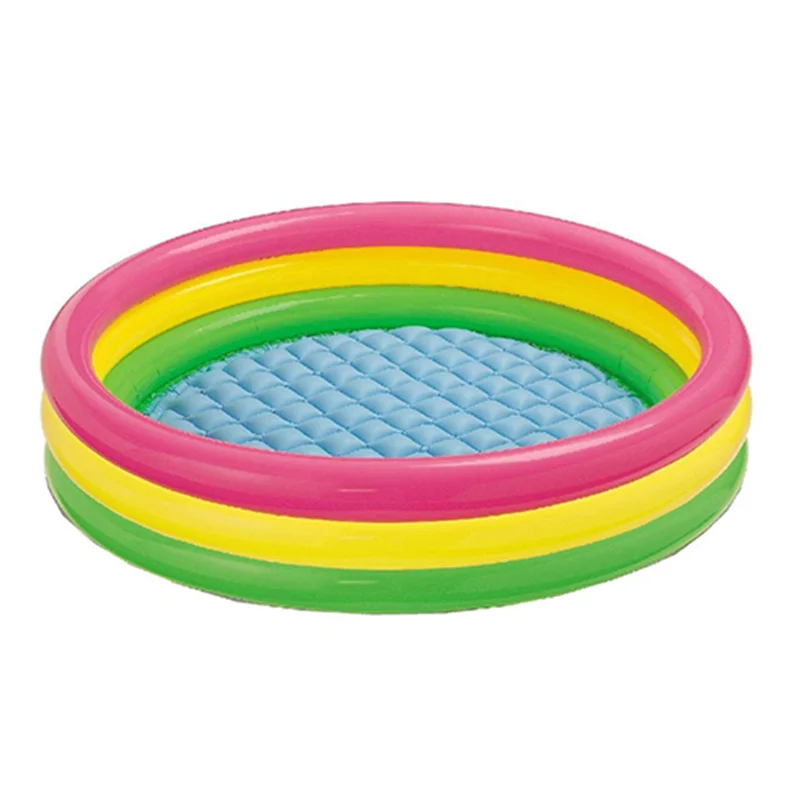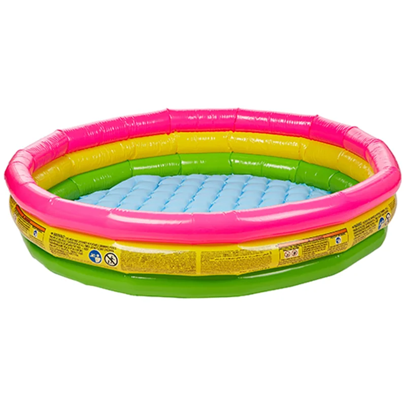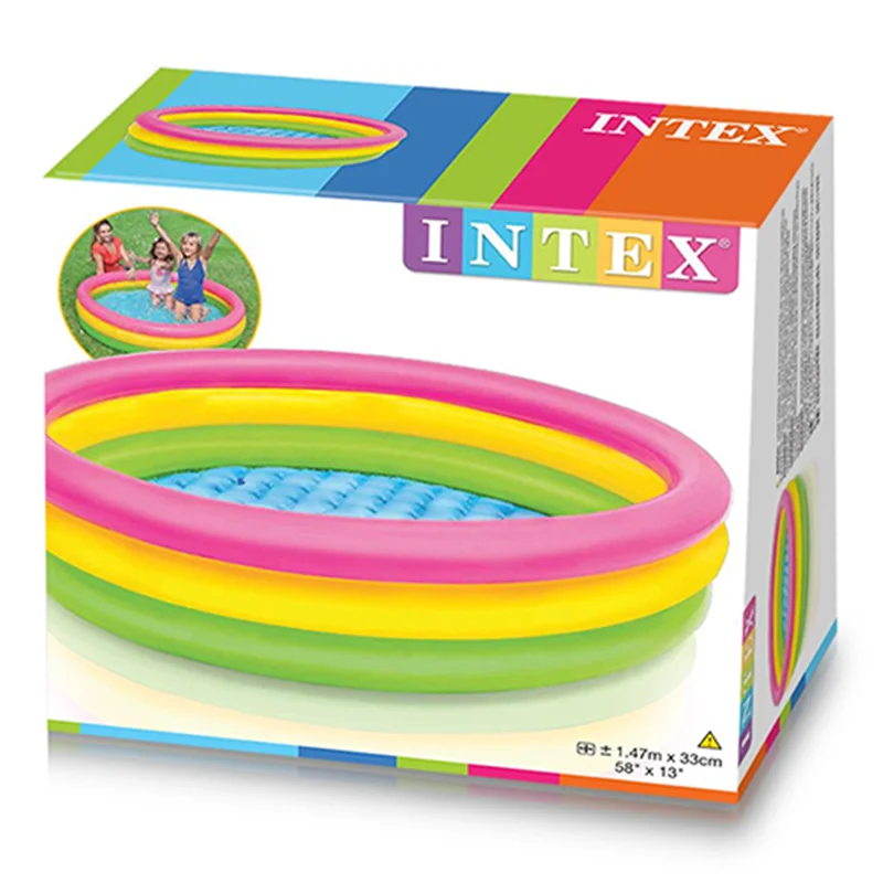 استخر بادی کودک رنگارنگ گرد اینتکس از سری محصولات پر فروش اینتکس است که رایج ترین استخر بادی در بین کودکان می باشد. این محصول طراحی و رنگبندی ساده ای دارد اما دارای ابعاد مختلف می باشد. این مدل از محصول دارای ابعادی برای استفاده کودکان بوده است به طوری که امنیت و آرامش آن ها را تضمین می کند. به همین خاطر است که می توان با خیالی آسوده نسبت به داشتن آن اقدام کرد و از وجود آن نیز بهره مند شد. استخر بادی بدنه ای با ساختار حلقه ای دارد. که در واقع حلقه های بادی بر روی هم قرار گرفته اند و می توانند موقعیت دلخواهی را به وجود آورند.