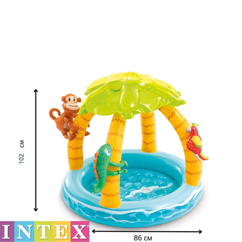 استخر بادی کودک سایبان دار جنگل 58417 از سری استخر های بادی منحصر به فرد می باشد که از بخش های مهم تشکیل شده است تا کودکان بتوانند در محیط امن به تفریحات آبی خود مشغول شوند. این محصول دارای سایبان بادی است که مقاومت زیادی در برابر اشعه آفتاب دارد. به این صورت که اشعه خورشید به سایبان بادی برخورد می کند و مانع از رسیدن آن به پوست کودکان می شود. لذا می توان در طول ساعات طولانی در فصول گرم سال که آفتاب با شدت می تابد از استخر بادی مد نظر برای کودکان استفاده کرد و برای آن ها بهترین موقعیت را به وجود آورد. این محصول خاص و زیبا ترکیبی از رنگبندی های شاد می باشد که طرح های مختلف بر روی آن قرار دارند و دارای ستون های بادی و محکم است که بر روی آن سایبان بادی قرار گرفته است. بخش حوضچه استخر بادی کودک مقاومت زیادی در برابر بازی و تفریح کودکان دارد و در نتیجه می تواند در این خصوص سازگاری زیادی از خود نشان دهد.