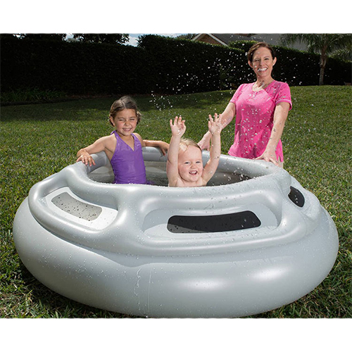 استخر بادی کودک سفینه ای بست وی یکی دیگر از سری استخرهای بادی ایده آلی است که کمپانی بست وی آن را تولید و ارائه کرده است. در رابطه با نوع طراحی این محصول باید به چند نکته مهم اشاره داشته باشیم. این استخر بادی همان طور که در تصاویر هم قابل رویت است ساختاری گرد را داراست که شبیه به یک سفینه بوده و با رنگ نقره ای طراحی و ارائه شده است که همین عامل یکی از مهم ترین خصوصیات این استخر نیز به شمار خواهد رفت. هم چنین شما این مزیت را در اختیار دارید که در بخش های بیرونی این محصول هم یک سری نقاط مشکی رنگ را مشاهده کنید که بیش از پیش این محصول را شبیه به یک سفینه کرده است. نکته مهم دیگر در رابطه با این استخر بادی شیوه راه اندازی آن است که قطعا کاری ساده و آسان بوده و با استفاده از یک پمپ باد که باید آن را به صورت مجزا تهیه کنید ، می توانید این استخر را در بازه زمانی کوتاهی راه اندازی نموده و از آن بهره مند شوید.
