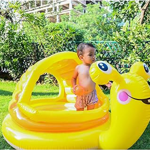 استخر بادی کودک طرح حلزون یک محصول خلاقانه و جذاب است که می توان آن را جزو استخرهای سه بعدی باحال و خاص کمپانی اینتکس در نظر گرفت. این محصول ساختاری دقیقا شبیه به یک حلزون زرد رنگ دارد که وجود سایبان بادی و همین طور کف بادشو باعث شده تا یک استخر ایده آل برای کودکان به شمار رود. رنگ جذاب این محصول نیز قطعا در روحیه کودک شما اثرگذار خواهد بود.