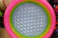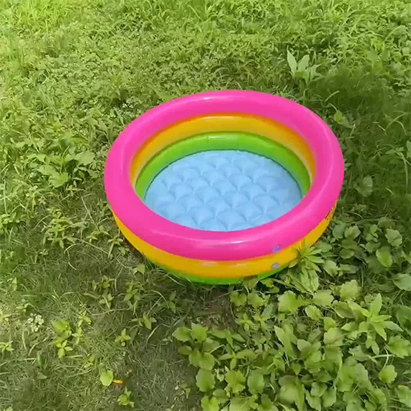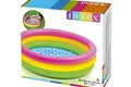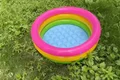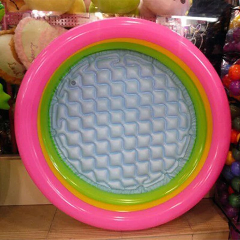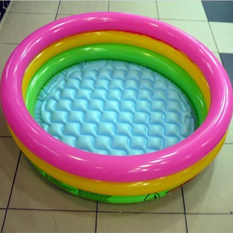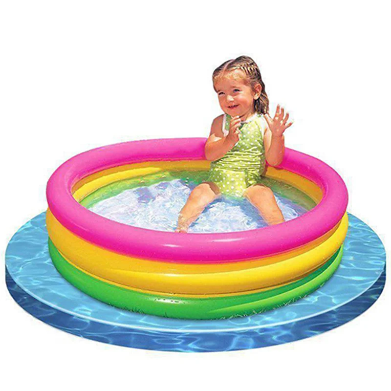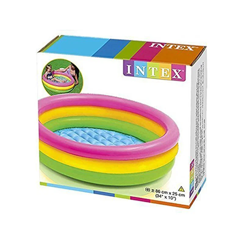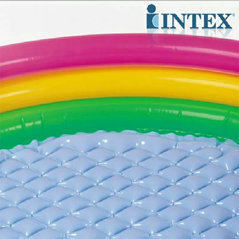 استخر بادی کودک قطر 86 سانت intex 58924 یکی از استخرهای بورسی و رایج در بازار می باشد که می تواند یک پیشنهاد خوب برای افرادی به شمار رود که به دنبال خرید یک استخر بادی کوچک با کف بادی هستند می باشد. این استخر بادی همان طور که در داخل تصاویر نیز قابل رویت می باشد دارای سه حلقه روی هم قرار گرفته شده می باشد که هر یک از این حلقه های گرد یک رنگ متفاوت داشته و شما می توانید سه رنگ صورتی ، زرد و سبز را به بهترین شکل ممکن مشاهده نمایید که ویژگی جذاب ظاهری این محصول نیز به شمار خواهد رفت. هم چنین بخش کف این استخر هم همان طور که اشاره کردیم به صورت بادی شکل گرفته است که فوق العاده نرم و راحت بوده و باعث شده تا کودکان در یک فضای ایده آل بتوانند به بازی و تفریح بپردازند.