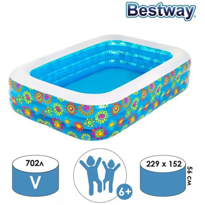 استخر بادی گلدار بست وی مدل 54120 از سری استخرهای بادی جدید و جذابی است که قطعا کمپانی بست وی سعی کرده تا با اوج خلاقیت خود این محصول زیبا و دوست داشتنی را ارائه کند. در همین رابطه باید اشاره داشته باشیم که این استخر از نظر ساختار به صورت مستطیلی شکل ارائه گردیده است که از نقاط قابل توجه به این محصول به شمار رفته و قطعا فضای بزرگ و ایده آلی را برای بازی و تفریح در اختیار شما قرار خواهد داد. هم چنین باید اشاره داشته باشیم که این محصول بدنه ای زیبا را داراست که شما می توانید به بهترین شکل ممکن یک سری طرح که شبیه به گل ها رنگی می باشد را بر روی این بدنه و بخش بیرونی این محصول مشاهده نمایید که ویژگی جذاب این استخر بادی نیز به شمار می رود. بحث بعدی که بسیار هم مهم خواهدبود جنس و کیفیت این استخر است که در هنگام خرید برای خیلی از افراد سوال خواهد بود.