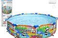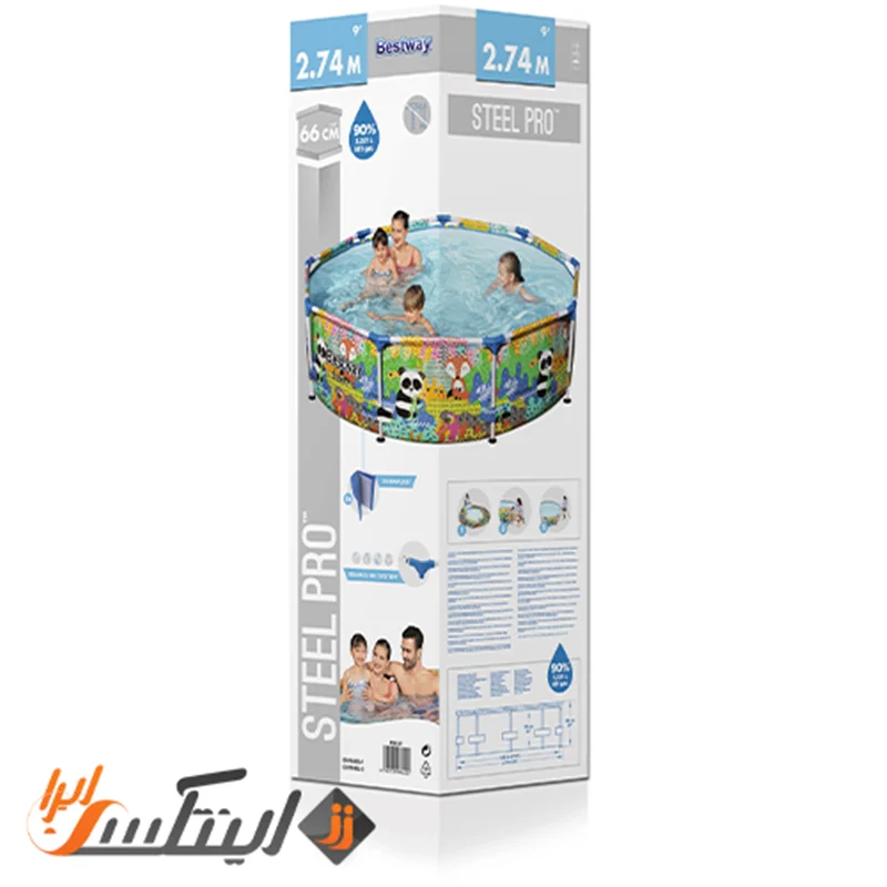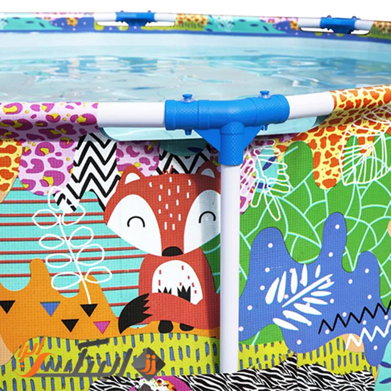 استخر پیش ساخته بست وی طرح باغ وحش دارای بدنه ای با جنس برزنتی است که بر روی آن طرح های رنگارنگ به کار رفته است. این طرح ها می تواند محصول را به شکل کودکانه و فانتزی تبدیل کند که مشخصه بارز این محصول بوده است. افراد می توانند استخر پیش ساخته را با این طراحی شناسایی کنند و آن را برای خرید مد نظر بگیرند. شناسایی این مورد از بین تمامی مواردی که در بین محصولات برند بست وی وجود دارد آسان خواهد بود. چرا که هم طراحی به روز و جدید است و هم از رنگبندی جذاب و کودکانه تشکیل شده است. از این رو برای استفاده کودکان در فصل تابستان بهترین گزینه به حساب می آید. پایه های محکم محصول سبب ایجاد استحکام و قرار گیری آن بر روی سطح زمین می شود این پایه ها بدون ایجاد زنگ زدگی و پوسیدگی قادر به استفاده برای مدت زمان طولانی است و افراد قادر به داشتن آن در طی سال های زیاد می باشند.