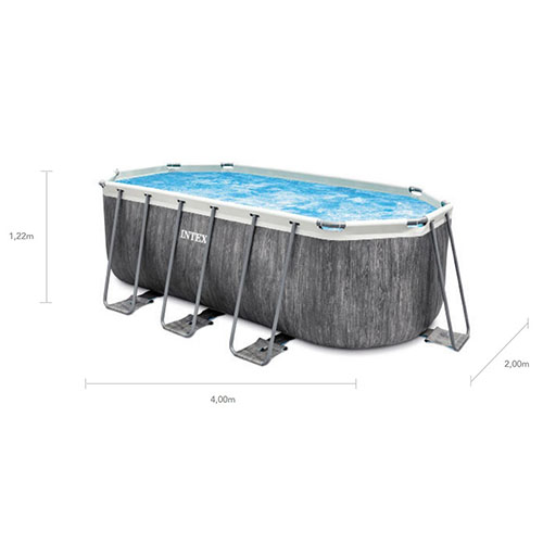 استخر پیش ساخته 4*2 بیضی اینتکس طرح چوب ترکیبی از بهترین مواد اولیه می باشد که در کنار هم تشکیل یک محصول بی نظیر و حرفه ای را داده اند. تا از آن به عنوان استخر تفریحی و یا استخر صنعتی استفاده شود. بهره برداری از این محصول بسیار زیاد است چرا که بدنه ای استوار و محکم دارد و می تواند برای مدت زمان طولانی موقعیت خود را حفظ کند. بدنه از جنس برزنت با الیاف شمعی تشکیل شده است که طرح چوب می باشد و جذابیت زیادی ایجاد می کند. همچنین پایه های آن از نوع آلومینیوم ضد زنگ می باشد که می تواند استحکام لازم را برقرار سازد و از آن جایی که به شکل یو می باشد به سطح زمین متصل می شود و بدنه را محکم می کند. این پایه ها از تحرک بدنه بر روی سطوح جلوگیری می کند و می تواند رضایت مخاطب را جلب کند. استخر پیش ساخته مد نظر دارای دریچه تخلیه آب در بدنه خود می باشد که به راحتی بتوان آب را تعویض کرد و یا برای تمیز کردن استخر بدنه را تخلیه نمود.