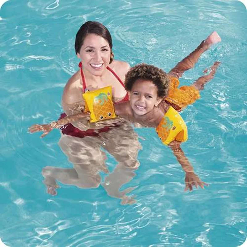 بازوبند بادی کودک سه تا شش سال مدل آناناس یکی از جذاب ترین محصولات بادی است که می توان از آن نهایت استفاده های لازم را به عمل آورد و امکان حضور کودکان در رده سنی سه تا شش سال را در محیط های آبی ایجاد کرد. این محصول بی نظیر ساخت شرکت بست وی می باشد و از بهترین مواد اولیه تشکیل شده است که ایجاد طول عمر بالا می کند و می تواند برای رده سنی کودک مزیت های زیادی را به دنبال داشته باشد. با این وجود است که محصولی پر فروش و منحصر به فرد است و می توان با تکیه بر کیفیت بالایی که دارد با پرداخت هزینه کم آن را به دست آورد و از آن لذت برد. بازوبند بادی دارای طراحی بی نظیر می باشد و دو طرح پر فروش را شامل می شود که می توان با توجه به سلیقه کودکان هر یک از آن ها را خریداری کرد و بهترین لحظات را از آن کسب کرد.