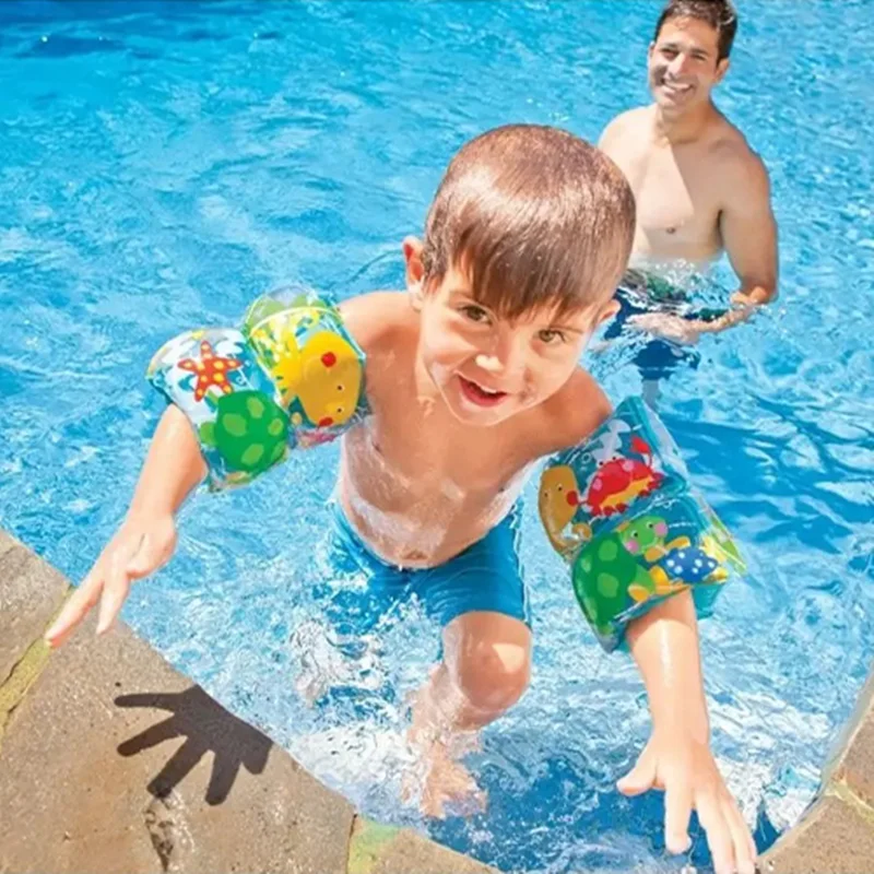بازوبند شنا بادی کودک طرحدار Intex 59650 جزو محصولات ضروری برای آن دسته از کودکانی می باشد که مهارت شنا را نمی دانند و در محیط های آبی دارای تعادل لازم نمی باشند. در نتیجه برای ایجاد ایمنی بیش تر و امکان حضور آن ها در محیط های آبی بازوبند شنا بادی تهیه می شود و نیاز آن ها به قرار گیری در چنین شرایطی و امکان داشتن تفریحات آبی بر طرف می گردد. به همین دلیل ساختار و طراحی استاندارد دارد و می تواند با قیمت مناسب سفارش داده شود. هر یک از کسانی که قصد ایجاد چنین تفریحاتی برای کودکان را دارند باید نسبت به خرید بازوبند شنا بادی نیز اقدام کنند. این محصول حاوی دو بازوبند می باشد که ساختار بادی و توخالی دارد و با وزن کم حالت بی وزنی به خود می گیرد. در نتیجه بر روی هر یک از بازو های کودکان قرار گرفته و سبب قرار گیری آن ها بر روی سطح آب می شود.