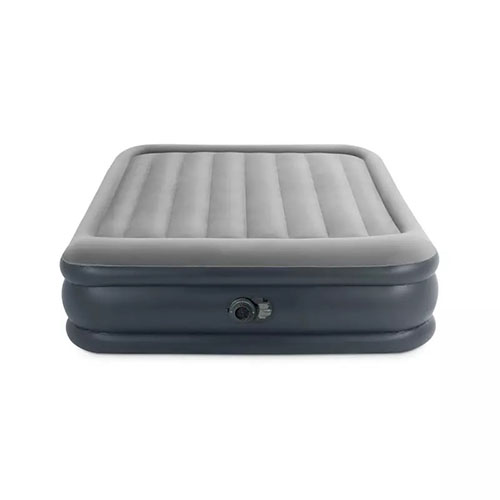 تخت بادی دونفره بالش دار جدید اینتکس مدل Deluxe Pillow Rest یکی از جدیدترین انواع تخت بادی تولید شده توسط کارخانه اینتکس در زمینه محصولات تخت خواب بادی برای خانواده و تمامی سنین مخصوصا رده سنی بزرگسال بوده که با ساختاری طبی و استاندارد و قیمتی مقرون به صرفه روانه بازار شده است. این تخت بادی از ساختاری شبکه ای برخوردار بوده به طوری که بخش داخلی آن را الیاف های ابریشمی تشکیل داده و شما یک محیط نرم و طبی و کاملا منعطف برای خواب خواهید داشت. این تخت بادی همچنین کاملا مواج و طبی بوده به طوری که شما می توانید خطوط موازی را بر روی بدنه اصلی آن مشاهده کنید. این خطوط موازی با ایجاد امکان گردش ازدانه هوا بین بدن فرد و رویه محصول از تعریق شما در زمان خواب اجتناب به عمل می آورد.