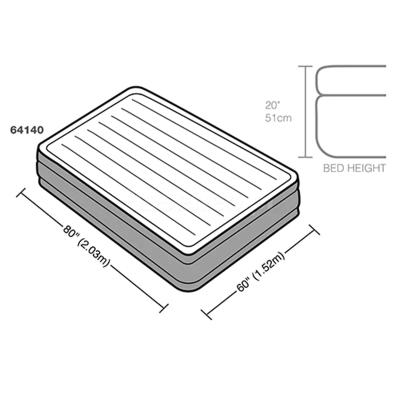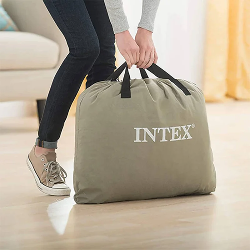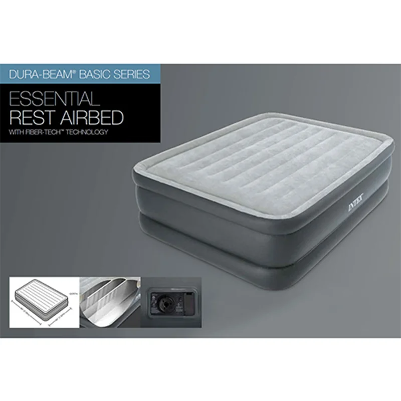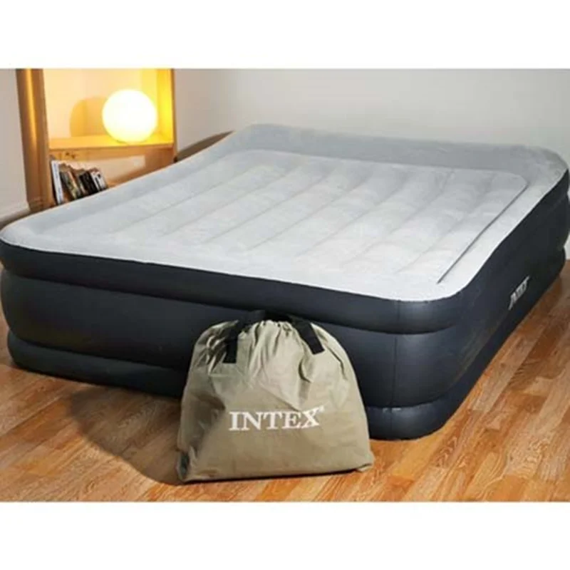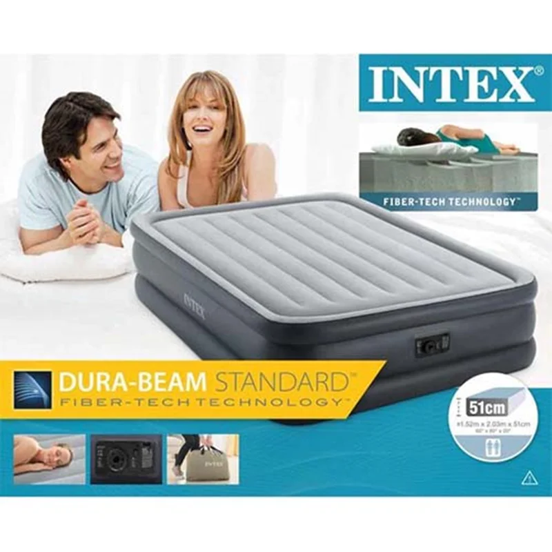 تخت بادی دونفره مرتفع طبی intex 64140 یکی دیگر از زیباترین انواع تخت خواب بادی برای استفاده تمامی سنین به خصوص رده سنی بزرگسال بوده که شما می توانید در زمان رفتن به سفر و یا در داخل منزل و محل کار خود برای استراحتی راحت آن را در نظر بگیرید. این تخت بادی بدنه ای مستطیل شکل داشته که در بخش لبه بالایی آن یک عدد پمپ باد برقی دو کاره تعبیه شده که با استفاده از برق شهری می توانید محصول را راه اندازی و یا باد محصول را تخلیه و آن را جمع کنید. این پمپ باد برقی قدرتمند و استاندارد بوده و می تواند خواسته شما را به راحتی و در زمانی کوتاه انجام دهد.