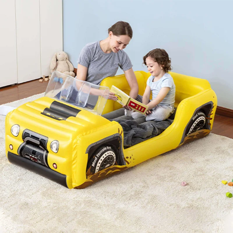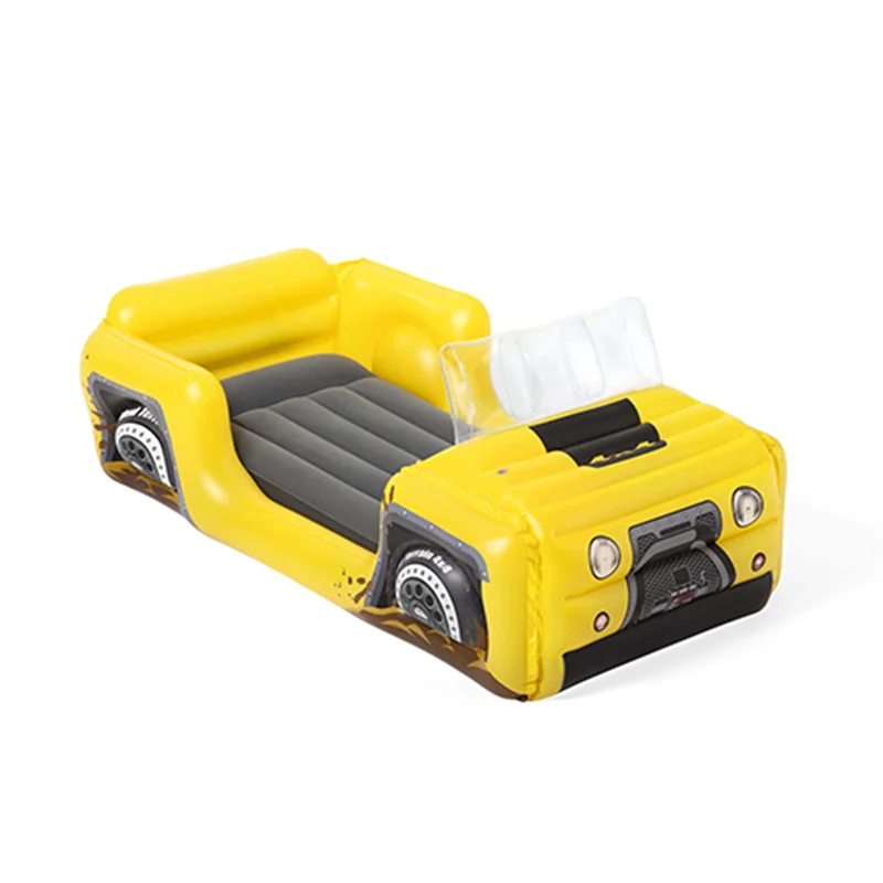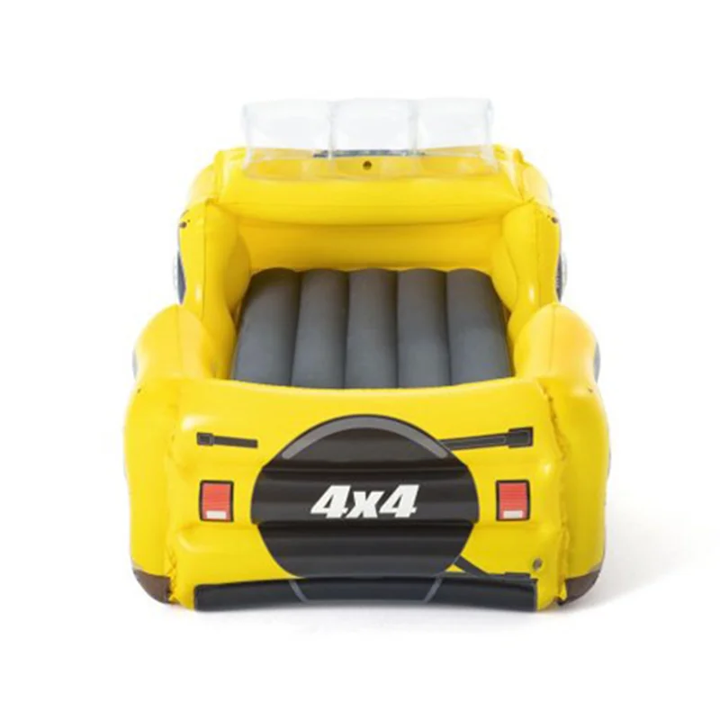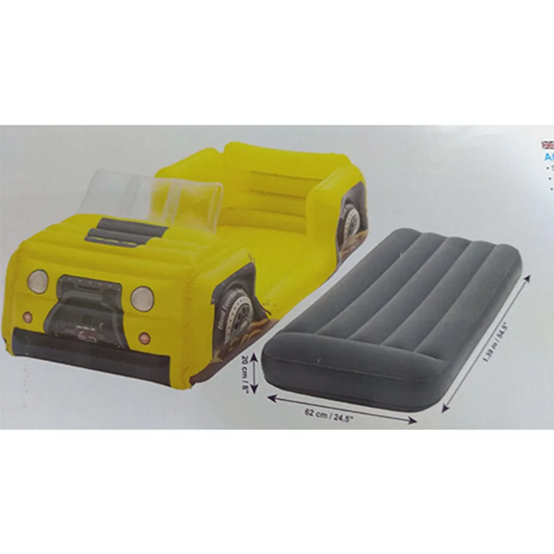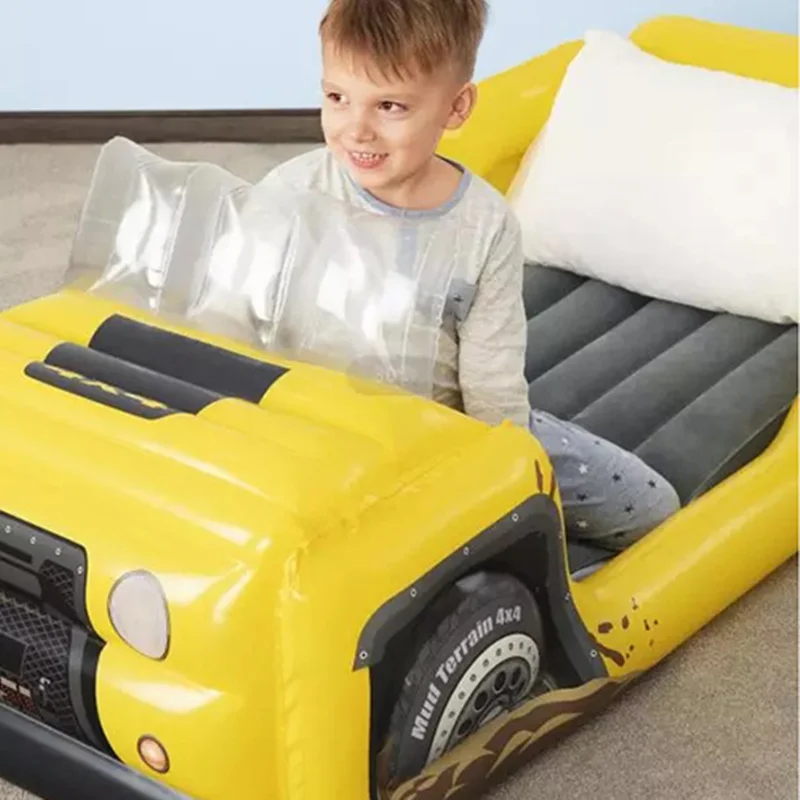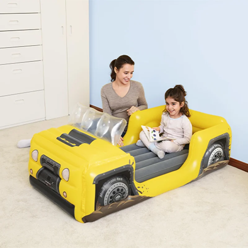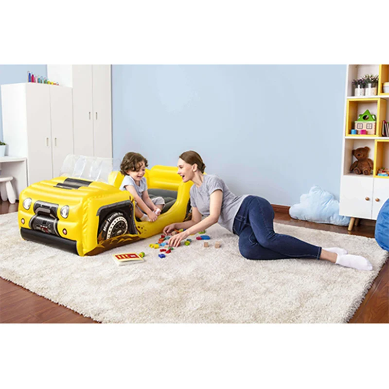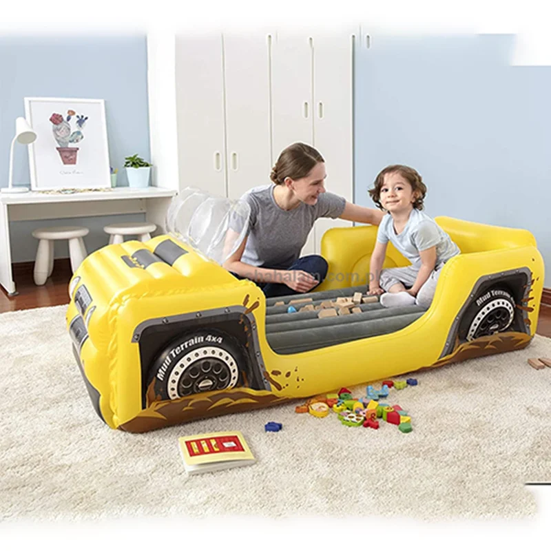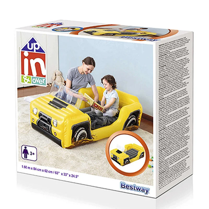 تخت بادی کودک مدل ماشین bestway 67714 یکی دیگر از زیباترین انواع تخت خواب بادی برای کودکان بوده که برای استفاده رده سنی 3 الی 6 سال با طول عمر بالا و باکیفیت و جذاب توسط کمپانی بست وی طراحی و روانه بازار شده است. بدنه اصلی این تخت بادی از مرغوب ترین نوع پی وی سی برزنتی تولید شده تا شما بتوانید با آسودگی خاطر در سال های طولانی برای فرزندان خود استفاده کنید.