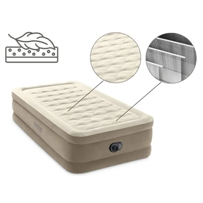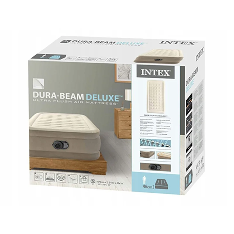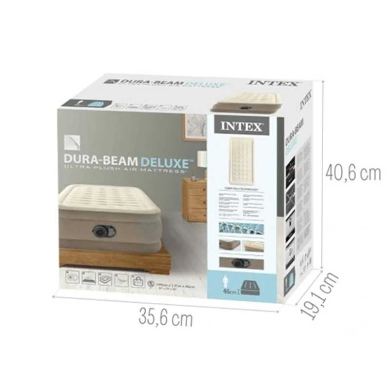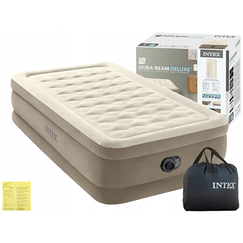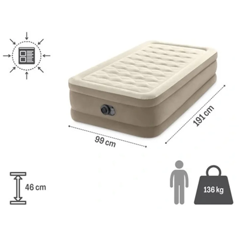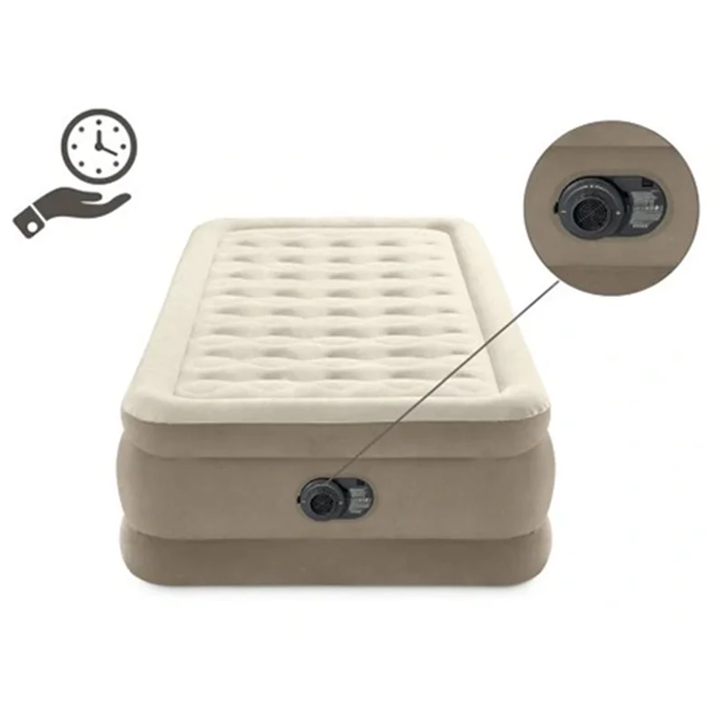 تخت بادی یک نفره اینتکس Ultra Plush Air Mattress با رویه مخمل مشبک و ضدتعریق همراه با بخش های کناری و بدنه اصلی مخمل دارای پمپ باد برقی سرخود با راه اندازی سریع و آسان همراه با ساک حمل و قابلیت استفاده در منزل ، محیط کار و کمپینگ از سری دلوکس اینتکس قابل خرید از سایت فروشگاه اینتکس ایران با بهترین قیمت ممکن است که می توانید از ان در هر فضا و مکانی به سادگی وبا راه اندازی ساده در کمتر از سه دقیقه استفاده کنید.