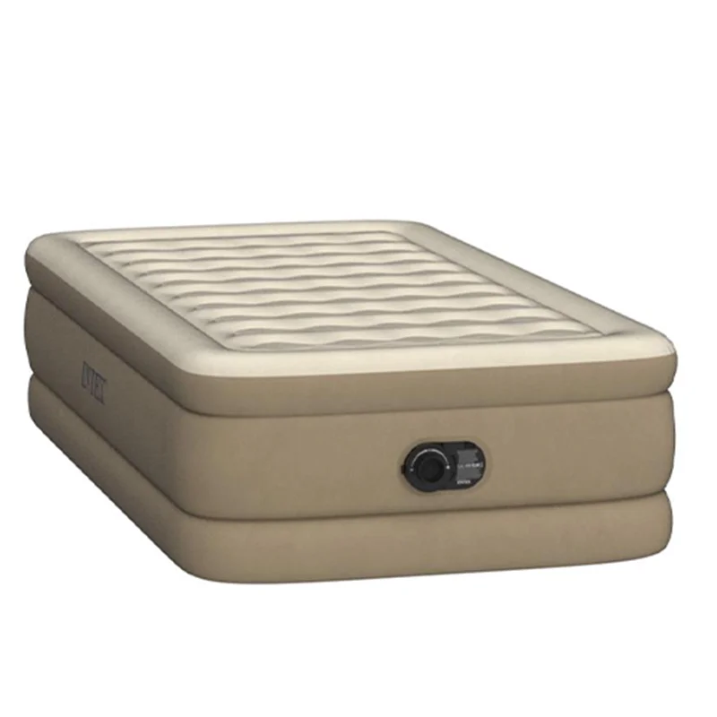 اگر شما هم قصد خرید یک تخت بادی لوکس و جذاب را دارید ، قطعا تخت بادی یک نفره اینتکس Ultra Plush Air Mattress می تواند یکی از فوق العاده ترین انتخاب های شما باشد. این محصول همان طور که در تصاویر هم قابل رویت است ساختاری مشبک دارد که همین عامل باعث شده تا فرد پس از خوابیدن بر روی این تخت خواب بتوانید خوابی راحت و ایده آل را تجربه کرده و از این نرمی و راحتی نهایت بهره را ببرد. علاوه بر این ها این تخت بادی دارای یک عدد پمپ باد برقی سرخود می باشد که این عامل باعث شده تا در کمتر از سه دقیقه این محصول به سادگی هر چه تمام تر راه اندازی شود. جهت تخلیه باد این تخت هم از همین پمپ باد می توانید استفاده کرده و به راحتی باد کالا را خالی کنید. علاوه بر این ها رنگ کرم و قهوه ای این تخت نیز آن را از سایر مدل ها متمایز کرده است.