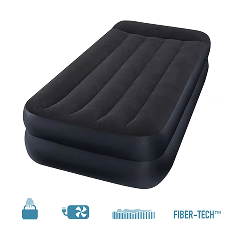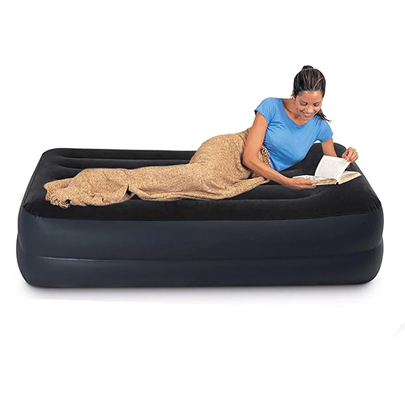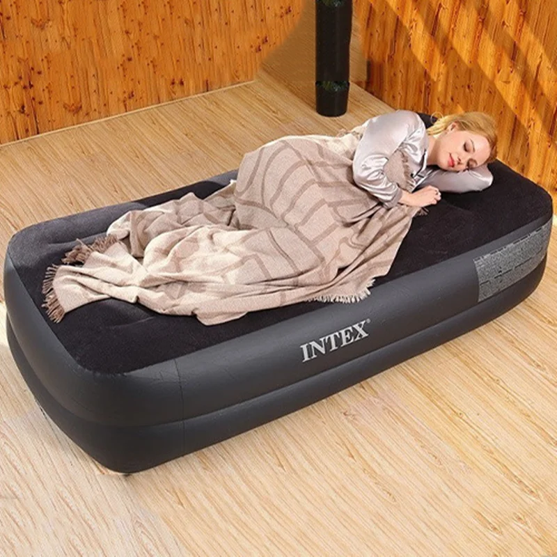 تخت خواب بادی یک نفره intex 64122 یک تخت بادی زیبا و خاص مناسب تمام سلیقه هاست که با رویه مخملی و مشکی رنگ طراحی و تولید شده است. این تخت بادی دارای پمپ باد برقی سرخود است که به راحتی می توان ان را راه اندازی و تخلیه باد کرد. هم چنین وجود ساک حمل در کنار این تخت بادی هم از دیگر ویژگی های خوب این محصول به شمار می رود. بهره مندی از بالش بادی سرخودهم باعث شده تا شما دیگر نیاز به بالش مجزا نداشته باشید. امکان خرید و ثبت سفارش این تخت بادی با بهترین قیمت ممکن از سایت فروشگاه اینتکس ایران برای شما فراهم است.