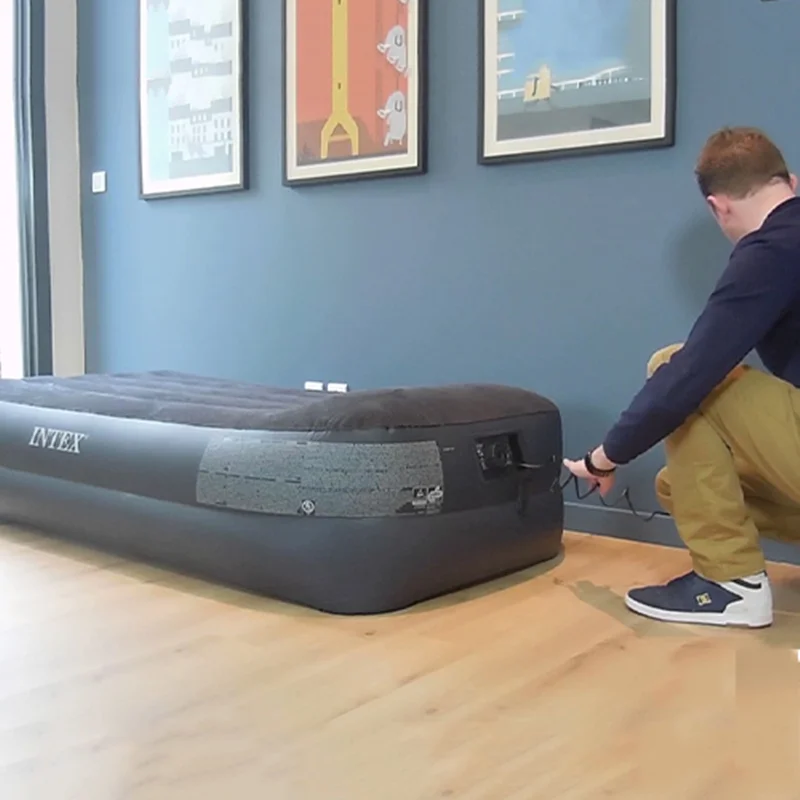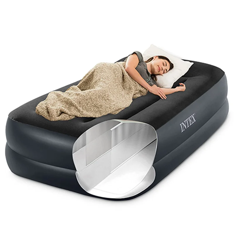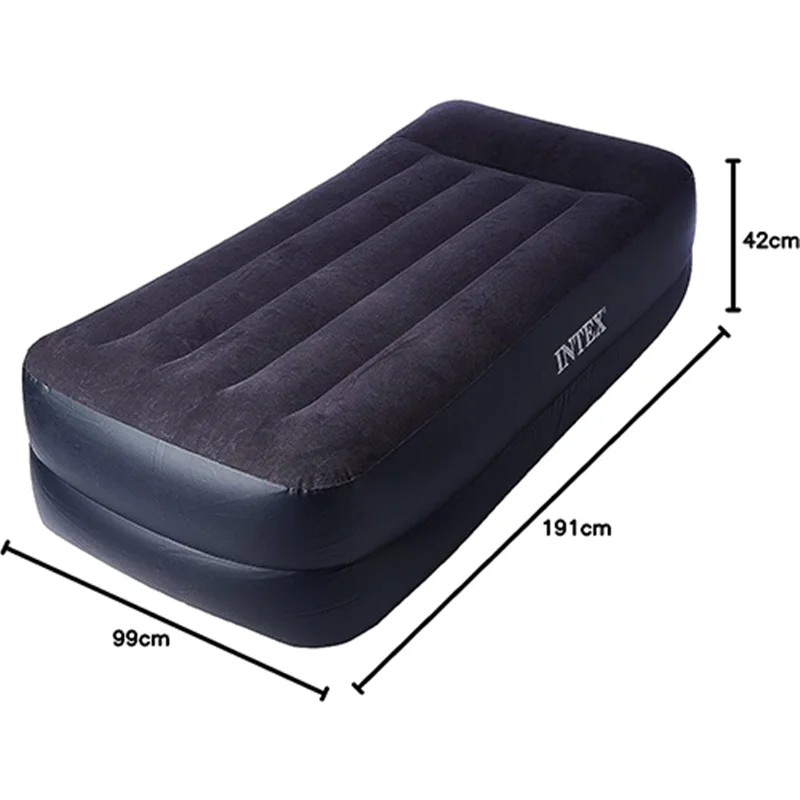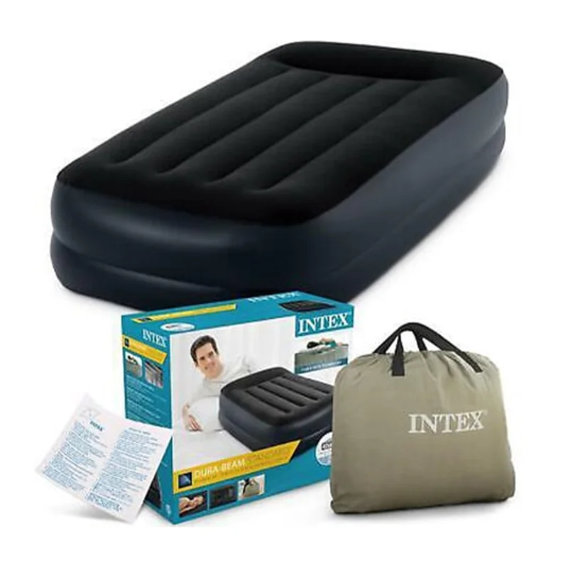 تخت خواب بادی یک نفره intex 64122 بر روی بدنه خود یک عدد پمپ باد برقی سرخود داشته که می توانید با استفاده از آن و در صورت اتصال به برق شهر بتوانید محصول خود را راه اندازی و یا حتی جمع اوری نمایید. همچنین این تخت بادی مجهز به یک ساک حمل نیز بوده که برای جا به جایی و نگهداری اصولی از محصول بعد از تخلیه باد مورد استفاده قرار می گیرد. بدنه اصلی این تخت بادی از مرغوب ترین نوع پی وی سی تولید شده و بستر اصلی خواب شما مجهز به روکش مخمل بوده تا یک محیط نرم را برای شما مهیا سازد. با در نظر گرفتن موارد یاد شده اگر شما قصد خرید تخت خواب بادی یک نفره intex 64122 را دارید می توانید به صورت اینترنتی و یا حضوری به نمایندگی اینتکس مراجعه نمایید.