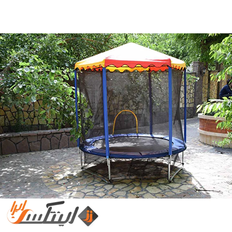 یکی از بهترین ویژگی های این ترامپولین داشتن سقف است که موجب می شود تا در زمان بازی در فضای باز، از تابش نور مستقیم خورشید جلوگیری شود. دور تا دور این ترامپولین دارای توری محافظ است که ایمنی بیش تری را خصوصا برای کودکان فراهم می کند و در صورت پرش نادرست، از پرتاب شدن کودک به بیرون جلوگیری خواهد کرد. این محصول دارای وزنی در حدود 70 کیلوگرم است و دارای تحمل وزن بالایی می باشد و همین امر موجب شده تا برای استفاده گروه های سنی مختلف مناسب باشد. این محصول دارای پایه هایی مقاوم و مستحکم است که طول عمر بالایی دارند. این پایه ها به صورت گالوانیزه بوده و در برابر زنگ زدگی نیز مقاوم می باشند. این محصول به راحتی و در زمانی کوتاه نصب شده و در صورت نیاز هم می توانید آن را جمع کرده و به فضای جدیدی منتقل کنید. از دیگر ویژگی های این محصول برخورداری از سه عدد پایه یو شکل است.
