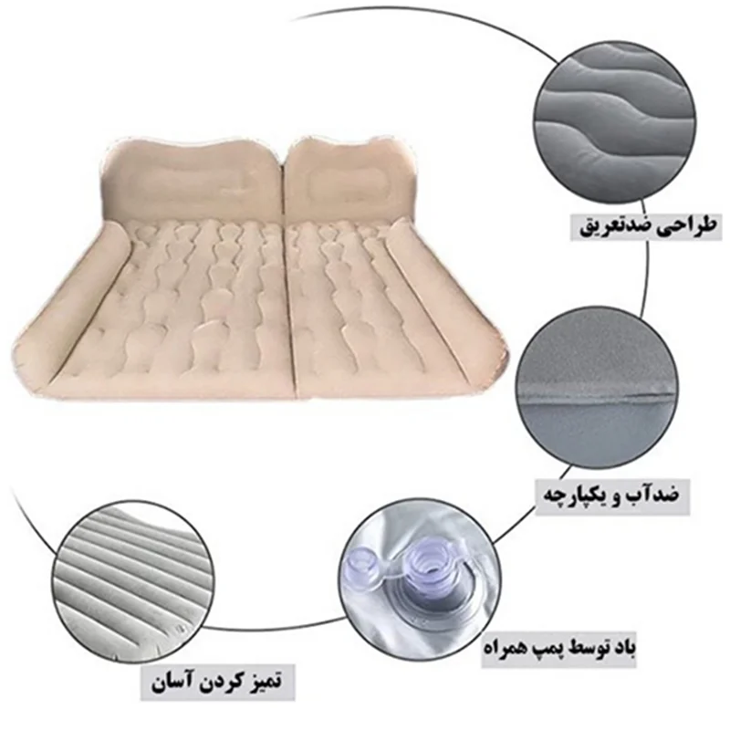 | سایر ویژگی ها | مناسب استفاده در صندق عقب ماشین مناسب ماشین های شاسی بلند دارای سطح مواج و ضد تعریق دارای پایه بادی یو شکل دارای دو کوسن بادی مجزا |