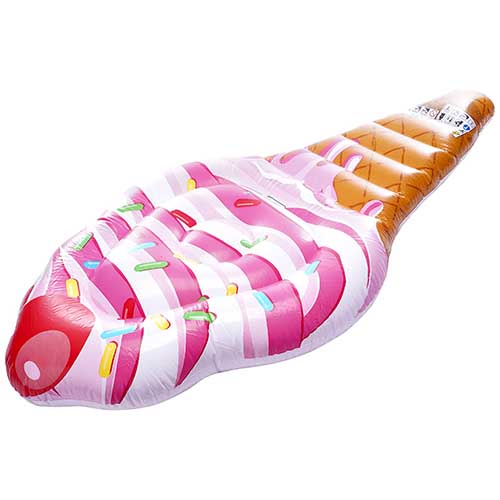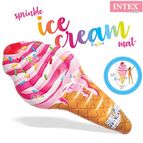 تشک بادی روی آب طرح بستنی قیفی Intex 58762 یکی از زیبا ترین و جذاب ترین تشک های بادی تولید شده توسط شرکت اینتکس می باشد. این تشک بادی روی آب از تولیدات جدید این شرکت محسوب می گردد که از طرفداران بسیاری برخوردار بوده و دارای جنس و دوام مناسب نیز می باشد. این تشک بادی طرح بستنی که از سری محصولات جدید کمپانی اینتکس است، دارای طراحی بسیار مدرن و حرفه ای بوده است که قابل استفاده تفریحات آبی بر روی آب های آرام، استخر ها و حتی سد ها باشد. گفتنی است که بدنه این محصول از لایه های فوق العاده ضخیم و مقاوم وینیل ساخته شده است که در برابر فشار و ضربه مقاومت خوبی دارد و در مدت زمان طولانی قابل استفاده می باشد البته با این وجود لازم است از فشار آوردن به یک نقطه از بدنه این محصول خودداری نمایید و ایمنی آن را نیز در نظر بگیرید.