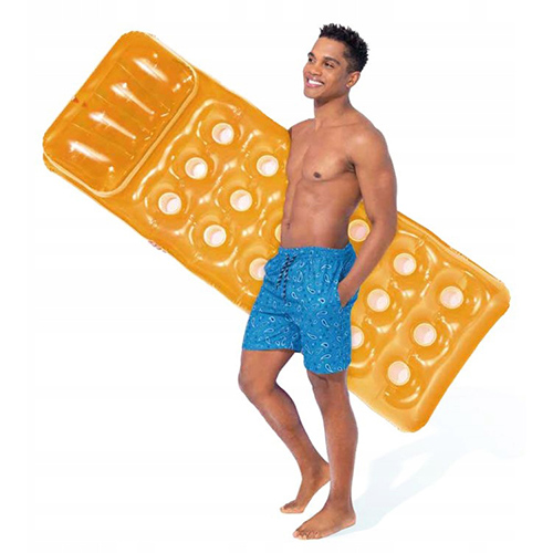 تشک بادی روی آب نارنجی اینتکس intex 58890 محصولی ساده و در عین حال محبوب است که با توجه به نوع ظاهر و با در نظر گرفتن وجود امکاناتی که دارد باعث شده تا به بهترین شکل ممکن بتوانید بتوانید دست به خرید و ثبت سفارش این محصول بزنید. در همین رابطه باید اشاره داشته باشیم که این کالا ساختاری شبیه به یک تشک را داراست که به صورت کاملا زیبا و جذاب می توانید از آن بر روی آب استفاده کرده و به استراحت و تفریح به صورت شناور بر روی آب های آرام بپردازید. از نظر نوع رنگ شما می توانید رنگ یکدست نارنجی را در طراحی این محصول مشاهده کنید که یک رنگ زیبا و جذاب بوده و به بهترین شکل ممکن پس از راه اندازی قابلیت استفاده را دارا خواهد بود. هم چنین دیگر نکته ای که باید در خصوص این تشک بادی روی آب به آن اشاره کنیم بحث ساختار داخلی این محصول است. در واقع شما می توانید طراحی شبکه ای متشکل از ساختاری شبیه به چندین لیوان را مشاهده کنید که در واقع این ظاهر زیبا باعث شده تا جلوه این محصول پس از باد کردن بسیار خاص باشد.
