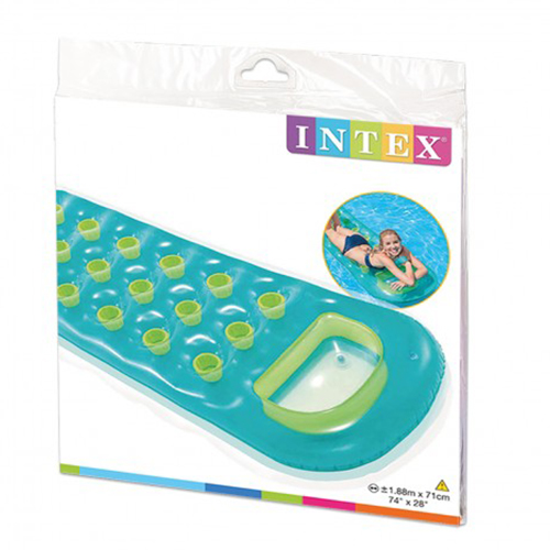 تشک بادی روی آب پنجره ای آبی اینتکس جدید ترین مدل تشک بادی روی آب می باشد که توسط شرکت اینتکس طراحی و تولید شده است و می تواند مورد استفاده افراد بزرگسال قرار گیرد. این محصول مناسب استفاده در محیط آب های آرام می باشد که استخر مهم ترین محیط برای بهره مندی از این محصول است. تشک بادی روی آب مد نظر دارای وزن کم و قابلیت حمل آسان در حالت خالی بودن از باد می باشد که بدنه آن به صورت تاشو در می آید و می توان مورد حمل و جا به جایی قرار داد. در این صورت تشک بادی روی آب مد نظر در مسافرت و گردش به همراه افراد می باشد و در صورت مناسب بودن شرایط می توان نسبت به راه اندازی و استفاده از آن اقدام کرد.