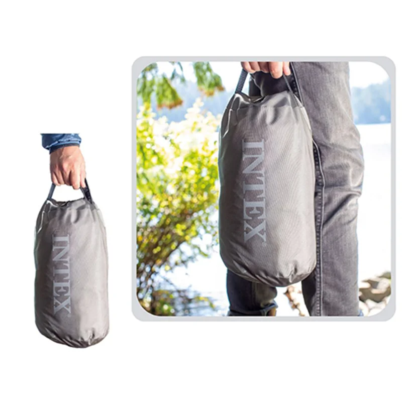 علاوه بر این موارد شرایط برای استفاده بر روی سطوح مختلف نیز مهیا می شود تا در نهایت بتوان با خیالی آسوده و با داشتن طول عمر بالا نسبت به استفاده کردن از محصول اقدام کرد و از داشتن آن لذت برد. تشک بادی کمپینگ به وسیله پمپ باد یو اس بی که جدید ترین پمپ باد اینتکس می باشد راه اندازی می گردد که به صورت رایگان در کنار محصول موجود است تا به خریدار ارائه گردد. این محصول را می توان با اتصال به کابل یو اس بی و یا کابل شارژر و یا پاور بانک شارژ نمود و در نهایت تولید باد را آغاز کرد و به وسیله نازل دوحالته باد مورد نیاز جهت راه اندازی تشک بادی را تامین کرد. در زمان نیاز به جمع آوری محصول نیز پمپ باد مجدد شروع به کار می کند و با قابلیت مکش باد می تواند باد داخل بدنه را به طور کلی تخلیه نمایند و در نهایت بتواند بهترین محصولی باشد که می توان در مسافرت و گردش از آن استفاده کرد. علاقه مندان به داشتن تشک بادی کمپینگ Queen Dura Beam عرض 152 می توانند از فروشگاه اینتکس ایران خرید خود را نهایی سازند.