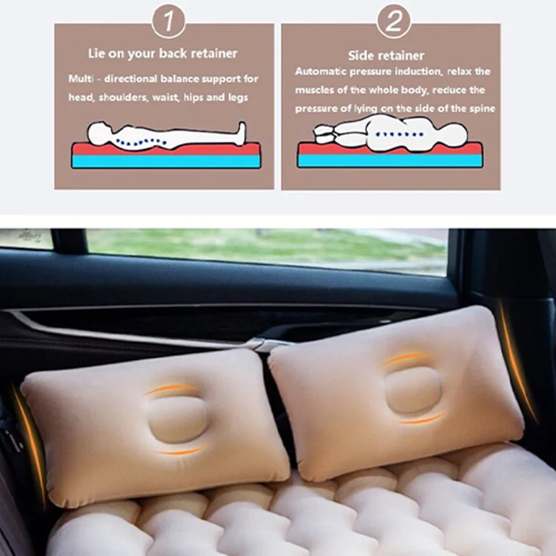 | سایر ویژگی ها | مناسب استفاده در صندلی عقب تمامی ماشین ها دارای سطح مواج و ضد تعریق دارای پایه های بادی مجزا دارای دو کوسن بادی مجزا برند car air bed |