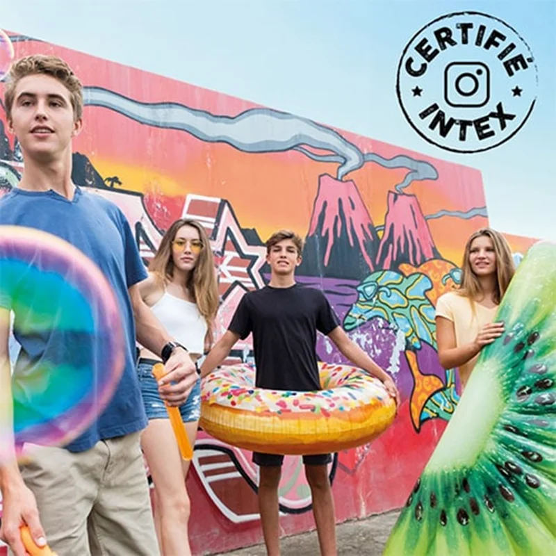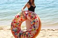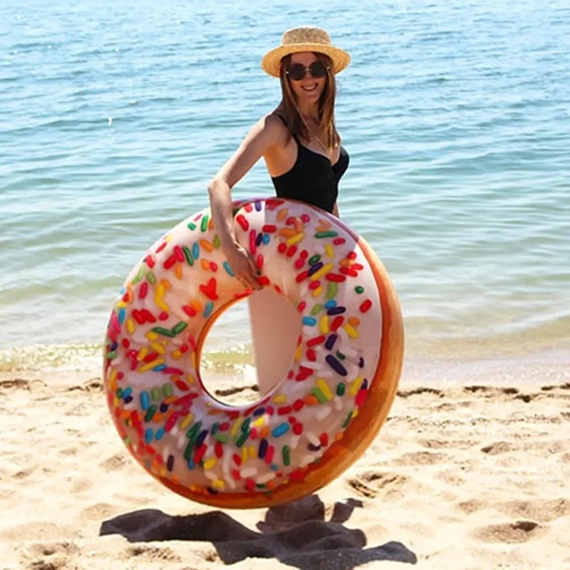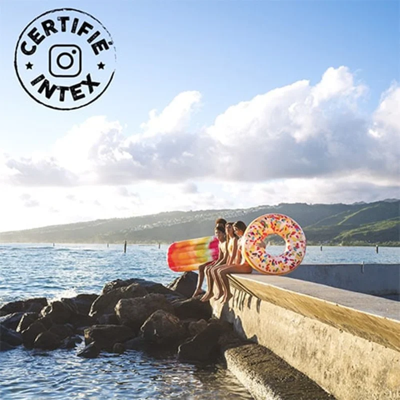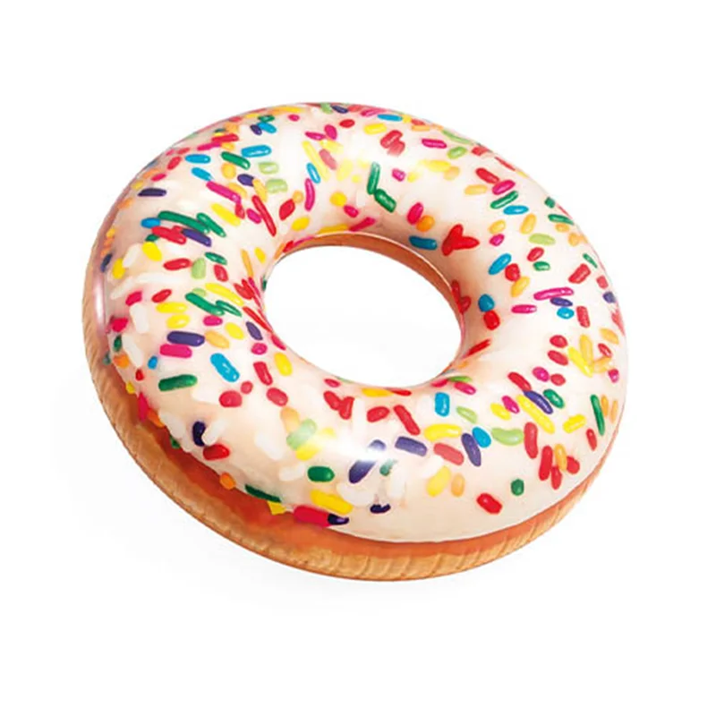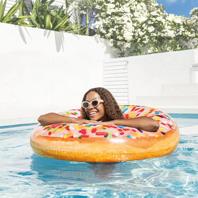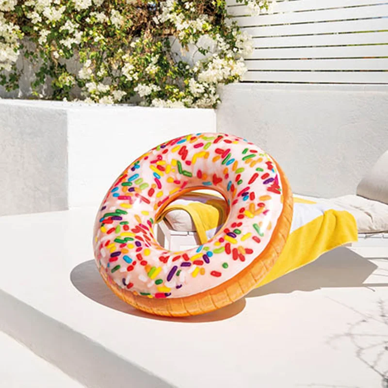 حلقه شنا بادی طرح شیرینی intex 56263 یکی دیگر از زیباترین انواع حلقه شنا بادی با ساختاری جذاب و کیفیت بالا بوده که توسط کارخانه اینتکس برای تمام سنین نوجوان و بزرگسال طراحی و با قیمتی مقرون به صرفه روانه بازار شده است. حلقه شنا بادی همانطور که از نام آن مشخص بوده ساختاری گرد داشته که بخش میانی آن خالی بوده که فرد مصرف کننده در این بخش قرار می گیرد. این محصول خاص وسیله ای بادی تفریحی برای استفاده در روز های گرم تابستان است که در محیط آب های آرام مورد استفاده قرار می گیرد. افراد برای موارد مختلف آن را استفاده می کنند و قادر به بهره مندی از یک روز شاد خواهند بود. کسانی که توانایی داشتن تعادل در محیط های آبی را ندارند و ممکن است به داخل آب فرو بروند می توانند از حلقه شنا بادی طرح شیرینی intex 56263 به عنوان یک وسیله کاربردی جهت حفظ تعادل استفاده کنند و موقعیت خود را به بهترین شکل داشته باشند.