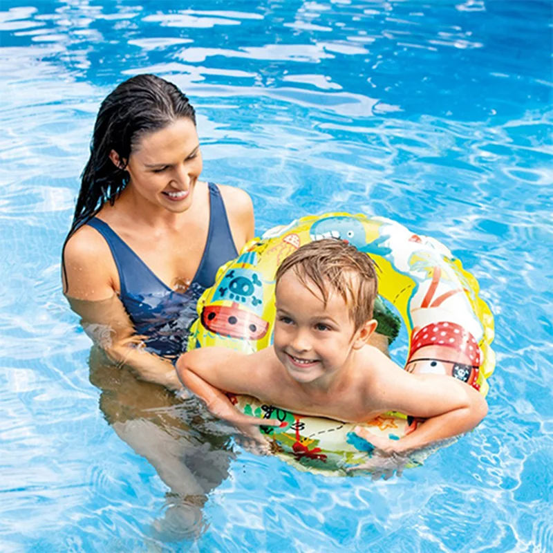 حلقه شنا بادی کودک دزدان دریایی Intex 59242 بهترین گزینه برای آموزش دادن ورزش شنا به کودکان می باشد و برای آن ها در محیط های آبی ایجاد ایمنی و آرامش می کند. در نتیجه می توان آن را برای رده سنی کودک تهیه نمود و امکان داشتن تفریحات آبی مهیج را برای این رده سنی مهیا ساخت. بدنه از ترکیب رنگ به خصوص تشکیل شده است و همچنین دارا طراحی فانتزی با طرح های کارتنی می باشد به همین خاطر است که مورد توجه قرار گرفته است و افراد زیادی به سمت خرید آن کشیده می شوند. علاوه بر ظاهری زیبا و فانتزی که متناسب با سلیقه کودکان است بدنه نیز در نهایت کیفیت طراحی و تولید شده است و می تواند به جهت استفاده در طول عمر بالا مد نظر قرار گیرد. در نتیجه طول عمر بالایی دارد و برای استفاده کودکان مختلف سازگاری های لازم را دارا می باشد.