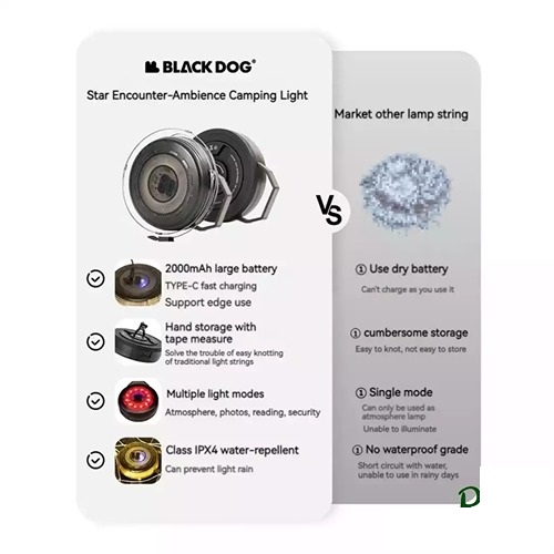 با ریسه لامپی کمپینگ بلک داگ، شبهای طبیعتگردیتان را روشن و جذاب کنید! طراحی کممصرف و مقاوم در برابر آب و باد، همراه همیشگی شما در هر ماجراجویی است. نصب آسان و نوردهی عالی، فضایی رؤیایی برای کمپینگتان ایجاد میکند. همین حالا خرید کنید و تجربهای متفاوت داشته باشید!