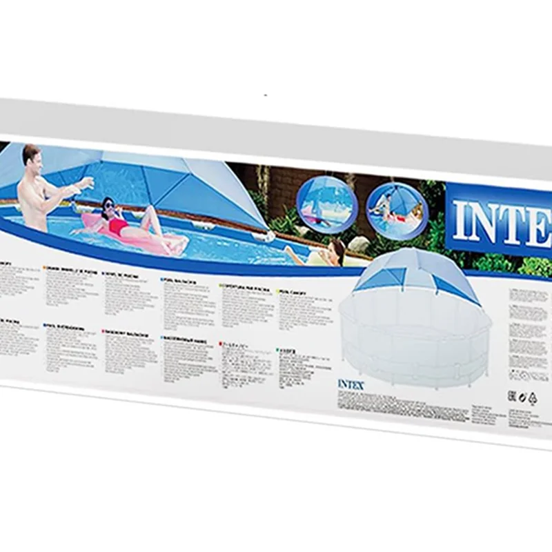 سایبان استخر پیش ساخته نیم دایره اینتکس یکی دیگر از محصولات کاربردی در گروه لوازم یدکی می باشد که برای استخر های پیش ساخته با بدنه گرد کاربرد دارد و زمینه استفاده از آن به بهترین شکل مهیا می باشد. این محصول برای استخر هایی با قطر 366 تا 549 کاربرد دارد و به راحتی باز و بسته می شود و می توان در کم ترین زمان آن را به بدنه استخر پیش ساخته متصل کرد. در ساختار سایبان استخر پیش ساخته بست هایی وجود دارد که به لبه های بدنه متصل می شود و می تواند به درستی نصب صورت گیرد و افراد دچار مشکل نشوند. این محصول دارای وزن کم است و با تاشو بودن می توان آن را در موقعیت های مختلف به همراه داشت و از داشتن آن لذت برد.