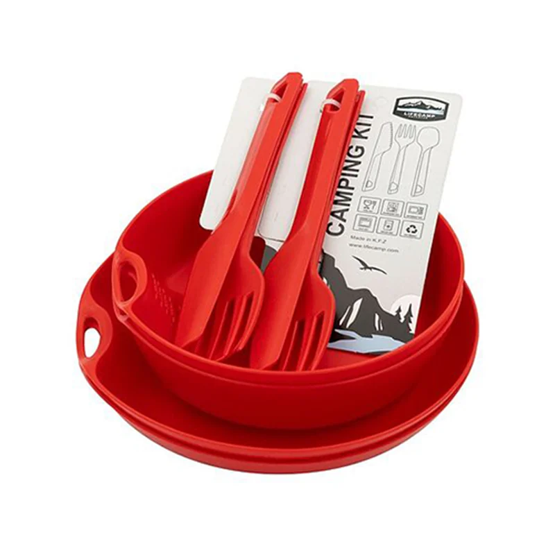 ست ظروف سفری دو نفره لایف کمپ 10 تکه قرمز یکی دیگر از ظروف جذاب سفری می باشد که توسط شرکت بزرگ لایف کمپ تولید شده و به صورت تخصصی برای کوهنوردی و کمپینگ مورد استفاده قرار می گیرد. این ظروف شامل ده تکه بوده که برای استفاده دو نفر طراحی شده است. اقلام این ست شامل دو عدد بشقاب، دو عدد کاسه، دو عدد قاشق، دو عدد چنگال و دو عدد کارد می باشد که مجموعه کاملی برای استفاده به صورت دو نفره می باشد و شما دیگر نیازی به حمل ظروف سنگین نخواهید داشت.