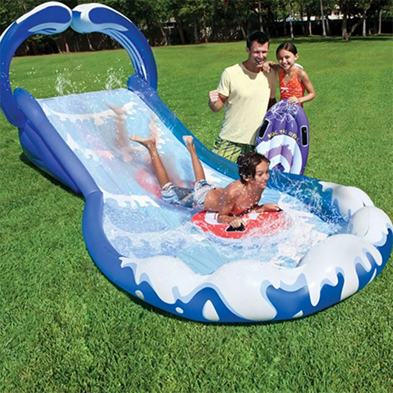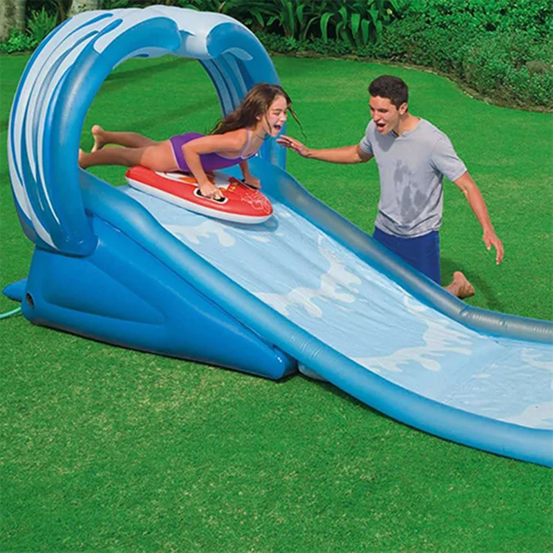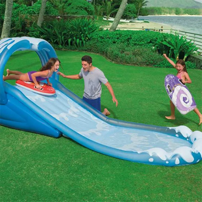 سرسره بادی کودک اینتکس intex 57469 محصولی جذاب و مهیج است که قطعا در فصل فروش میتواند یک گزینه عالی برای خرید و استفاده برای بازی و تفریح کودکان باشد. شما می توانید مشاهده کنید که این محصول به گونه ای طراحی و تولید شده است که کودکان می توانند در یک محیط بزرگ و ایده آل به تفریح و بازی بپردازند و از در اختیار داشتن این محصول نیز لذت ببرند. در همین راستا در این بخش قصد داریم تا ویژگی های این سرسره بادی را در اختیار شما قرار دهیم تا با آگاهی کامل بتوانید دست به خرید این محصول بزنید. باید اشاره کنیم که این سرسره بادی دارای طراحی فوق العاده زیبایی است که می توانید طرح موج را هم بر روی این کالا به زیباترین شکل ممکن مشاهده کرده و جلوه ای فوق العاده را در کنار رنگ آبی و سفید مشاهده کنید. هم چنین باید اشاره کنیم که این محصول دارای ارتفاع مناسبی است به این صورت که کودک می تواند از ارتفاع ایده آلی به بازی بپردازد.