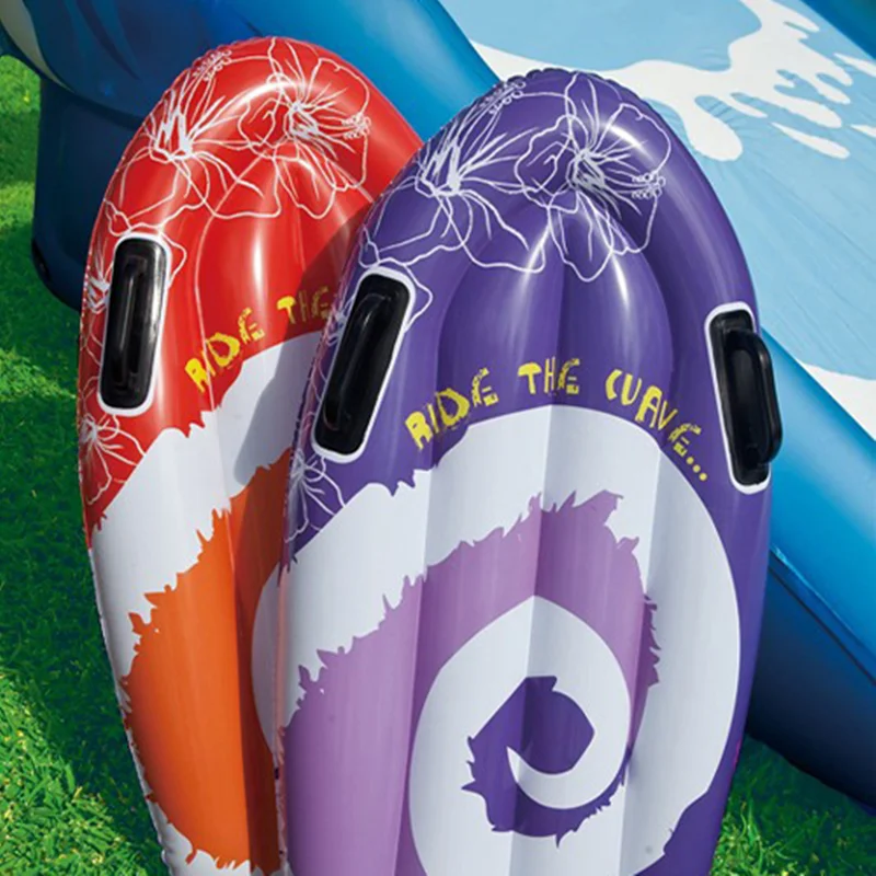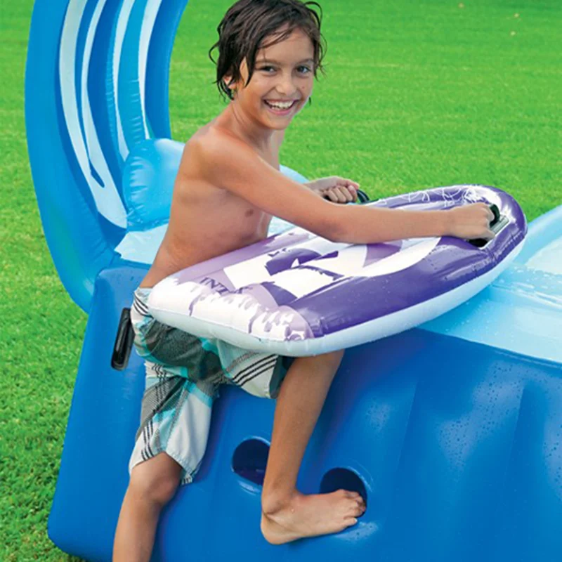 به جز این موارد شما می توانید مشاهده کنید که سرسره بادی کودک اینتکس intex 57469 دارای دو عدد بورد و یا تخته شنا می باشد که هر دوی این موارد نیز دارای دستگیره های حمل و نقل بوده و به راحتی شما می توانید بدون نگرانی از بابت آسیب دیدن کودک خود این دو تخته شنا را در اختیار آن ها قرار دهید تا به بهترین شکل ممکن به بازی و تفریح بپردازند. بدنه ضخیم این محصول هم باعث شده تا مشتریان با خیالی راحت بتوانند بدون نگرانی از بابت سوراخ شدن و یا آسیب این محصول از آن بهره مند شوند. وزن باکس این سرسره بادی نیز 14.7 کیلوگرم می باشد که مقداری حمل و نقل آن را سخت کرده است. با در نظر گرفتن این موارد شما می توانید این محصول فوق العاده را برای فرزند خود از سایت فروشگاه اینتکس ایران با قیمت عالی به ثبت برسانید.