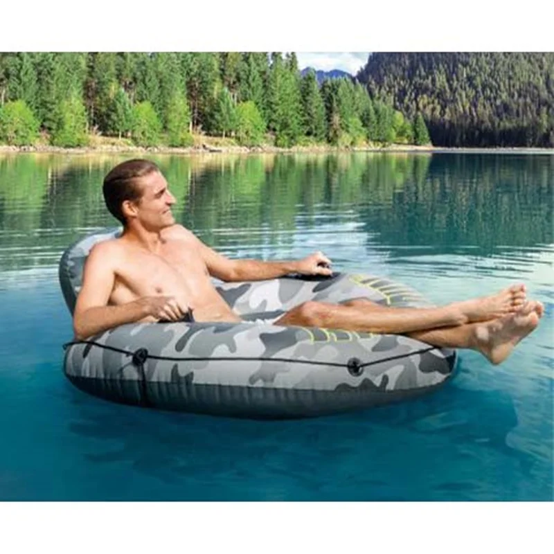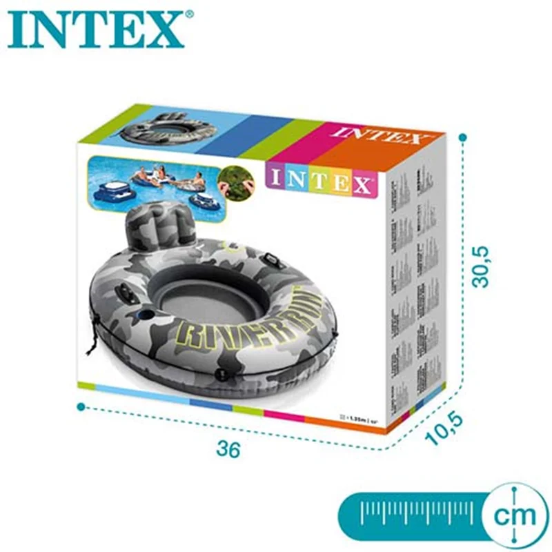 شناور بادی روی آب ریور وان Intex 56835 برای استفاده بزرگسالان در محیط های آبی ساخته شده است و از طراحی منحصر به فرد تشکیل شده است. به منظور داشتن محیطی راحت و سطحی که بتوان بر روی آن با حالت آرامش بخش قرار گرفت تکیه گاه بادی شامل محصول شده است که می تواند برای قرار گیری استاندارد کمر مد نظر قرار گیرد. رویه این تکیه گاه از ساختار مواج تشکیل شده است که می توان از طبی بودن آن لذت برد. در کناره های محصول دستگیره نگه دارنده قرار گرفته است تا بتوان به راحتی تعادل لازم را به دست آورد. به دلیل محبوبیت بیش تر طراحان این محصول را با طرح ارتشی ساخته اند و رویه آن را از زیباترین ساختار تشکیل داده اند. به همین خاطر است که می توان نسبت به خرید آن برای استفاده در محیط های آبی اقدام نمود و از داشتن آن بهره مند شد.