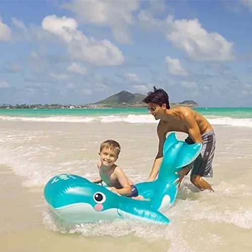 شناور بادی روی آب کودک طرح وال 57567 از سری شناور های بادی منحصر به فرد می باشد که به دلیل داشتن ساختار سه بعدی طرفداران زیادی دارد و اغلب کودکان به سمت خرید آن کشیده می شوند. این محصول جذاب ایمنی لازم برای قرار گیری کودکان در محیط های آبی را ایجاد کرده است تا والدین با خیالی آسوده کودکان را در محیط های آبی قرار دهند و به تفریحات آن ها رسیدگی نمایند. ظاهر محصول طراحی جذابیت دارد که شبیه به وال بوده و در نتیجه کودکان تصور می کنند که بر روی یک وال بزرگ سوار می باشند. سطحی که کودکان بر روی آن قرار می گیرند مواج و طبی است که راحتی را برای آن ها ایجاد می کند و ساختاری استاندارد دارد. تعادل در تمامی بخش های این شناور بادی وجود دارد که با وجود دستگیره های نگه دارنده پلاستیکی که در دو سمت محصول وجود دارد دو چندان می شود.