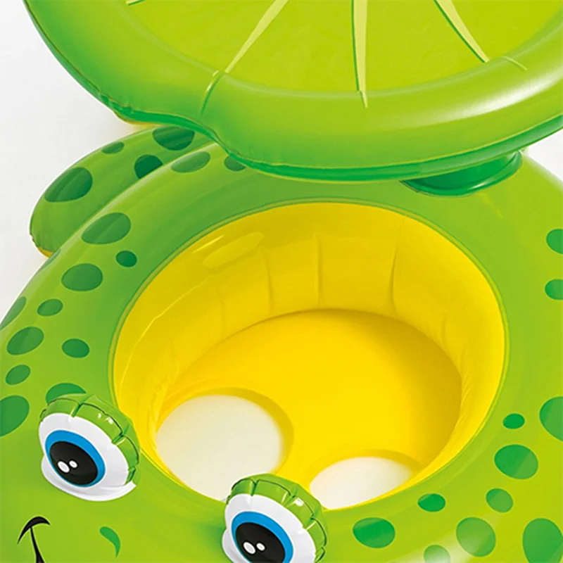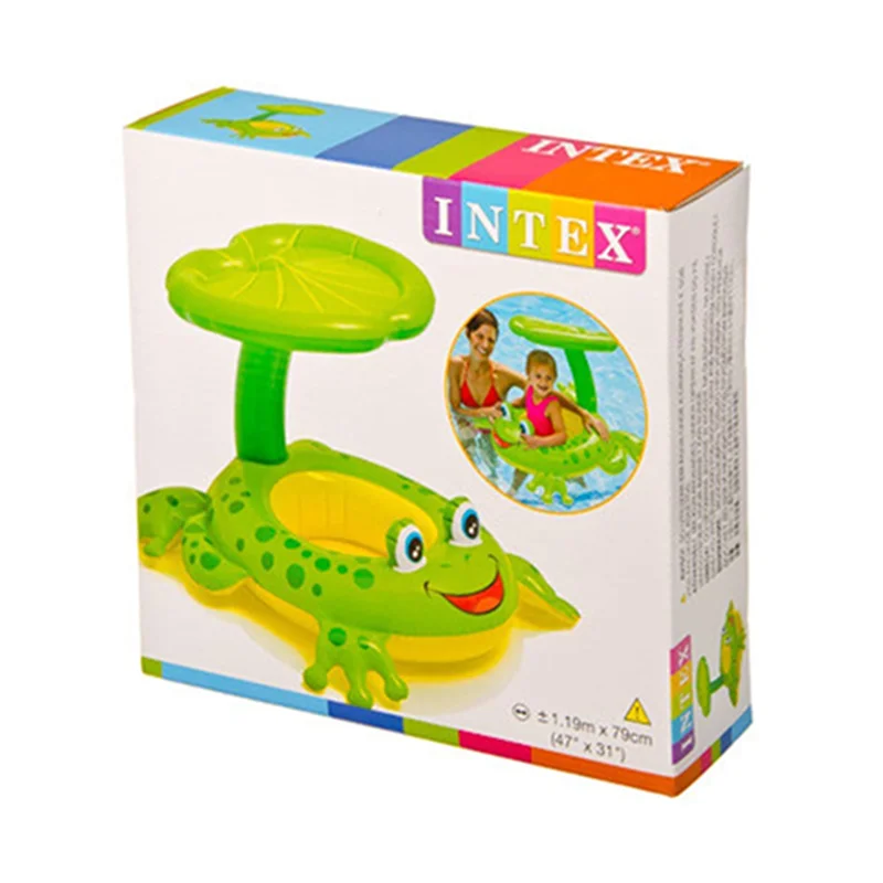 یکی دیگر از ویژگی های این شناور بادی داشتن سایبان بادی با قابلیت جداشونده بوده که کودک شما را از آفتاب سوختگی و تابش مستقیم اشعه خورشید محافظت می نماید و محیطی نرم و راحت با داشتن سایه خنک در روزهای گرم تابستان ایجاد می نماید. شناور بادی شورتی کودک طرح قورباغه intex 56584 ساخته شده از جنس پی وی سی با روکش چرم بوده که دارای وزن بدنه ایده آلی با حمل آسان می باشد و با حجم متناسب خود، فضای کمی را روی سطح آب اشغال می نماید. جهت سفارش این کالا به سایت اینتکس ایران مراجعه کنید.