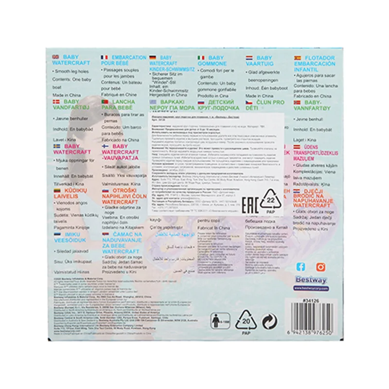| سایر ویژگی ها | مناسب کودکان 6 ماه تا 18 ماه دارای دو جای مخصوص قرار دادن پا قابلیت تعادل بالا بر روی آب دارای تکیه گاه بادی |
