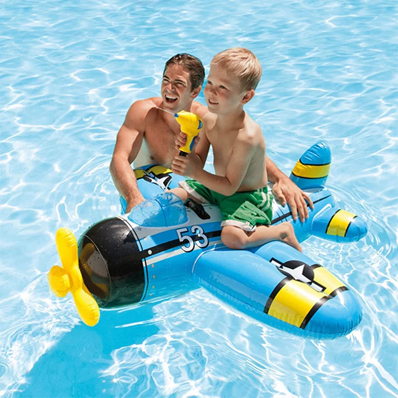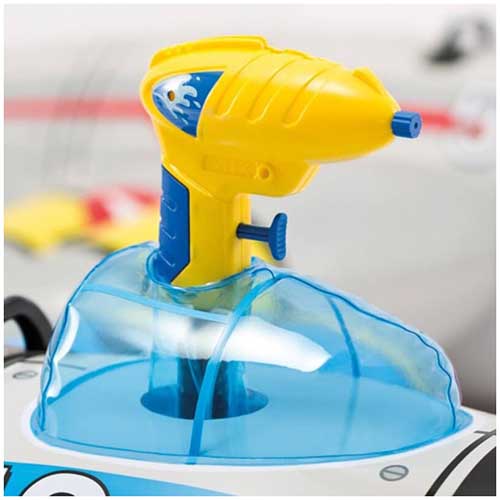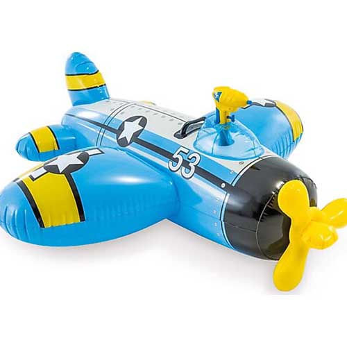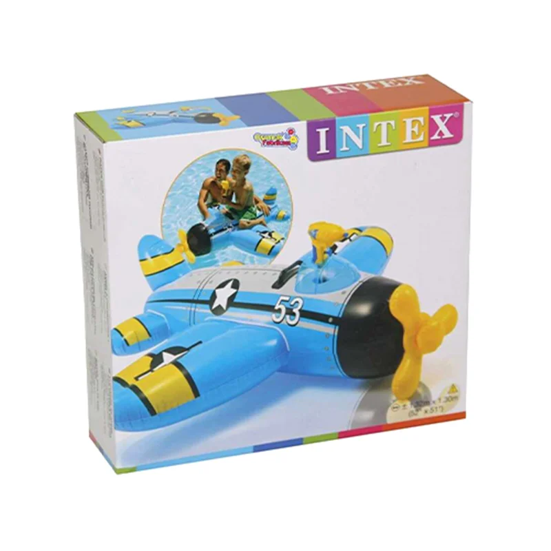 شناور روی آب طرح هواپیما آبپاش دار آبی intex 57537 یکی دیگر از محصولاتی است که توسط شرکت اینتکس به تازگی به بازار عرضه شده است. بی شک تفریحات آبی یکی از محبوب ترین تفریح ها برای کودکان می باشد و این شناور روی آب یک محصول هیجان انگیز و بی نظیر برای بازی کودکان در استخر است. این محصول خاص به صورت یک هواپیمای بادی طراحی شده است که به رنگ آبی می باشد. این هواپیما توسط دریچه های بادی که بر روی بدنه آن قرار گرفته است راه اندازی می شود و برای این کار شما نیازمند یک پمپ باد هستید که می توانید از فروشگاه اینتکس ایران خریداری نمایید. پس از راه اندازی این محصول بر روی آب قرار می گیرد. یکی از ویژگی های خاص در طراحی این شناور، برخورداری از آبپاش است. در قسمت بالایی این شناور یک آبپاش قرار دارد که به صورت دسته هواپیما طراحی شده است و آب را به اطراف می پاشد.