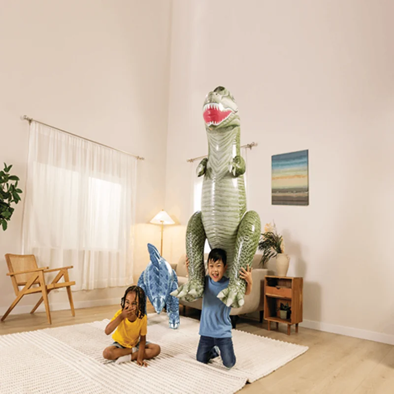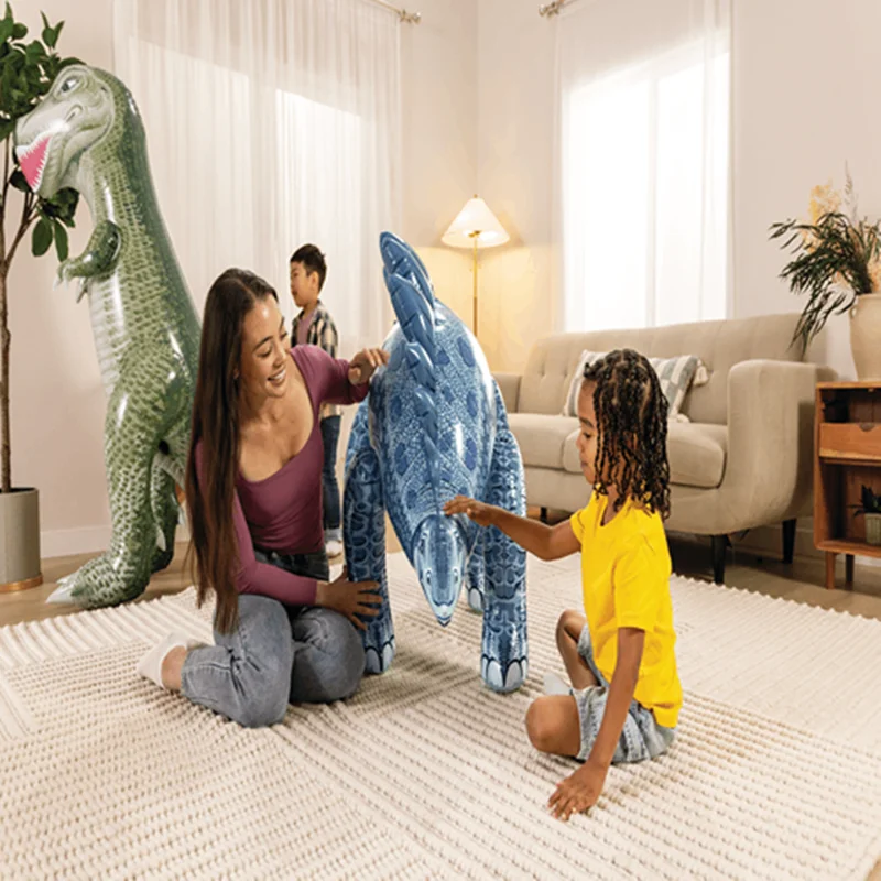 عروسک بادی طرح دایناسور ژوراسیک بادی کوتاه آبی یکی از بهترین وسایل بادی است که امروزه کودکان به آن نیاز دارند تا در بستری ایمن به تفریحات مختلف بپردازند و سرگرمی های خاصی را تجربه نمایند. این محصول دارای بدنه ای بزرگ می باشد و در واقع عروسک بادی غول پیکر را ایجاد کرده است تا کودکان لذت ببرند و بتوانند ساعات خوشی را به دست آورند. این محصول بی نظیر ساخت شرکت اینتکس است و از بهترین مواد اولیه تشکیل شده است تا بتوان آن را در معرض تابش خورشید نیز استفاده کرد و در محیط های مرطوب هم قابلیت استفاده شدن داشته باشد. در نتیجه بهترین خصوصیات را دارد و می توان از این محصول برای استفاده در طولانی مدت یاد کرد و برای کودکان مجموعه ای منحصر به فرد و خاص را رقم زد.