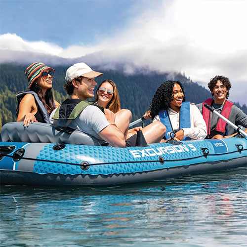 قایق بادی اکسکروشن 5 اینتکس مدل excursion TM 66325 حرفه ای ترین قایق بادی است که در حال حاضر توسط شرکت اینتکس موجود شده است و دارای تمامی استاندارد های لازم می باشد. این محصول بدنه ای بزرگ و جادار دارد و ظرفیت آن پنج نفره است. به طوری که اعضای یک خانواده پنج نفره قادر به حضور آسان در داخل آن می باشند و می توانند به گشت و گذار بپردازند. قایق بادی مد نظر مزیت های زیادی دارد و از طراحی بی نقص برخوردار می باشد که در این صورت خرید آن به تمامی علاقه مندان توصیه می شود تا به همراه اعضای خانواده و یا جمعی از دوستان قادر به بهره برداری از این محصول باشند. اگر قصد توصیف این محصول حرفه ای را داشته باشیم امکان بررسی از دو جهت وجود دارد که می توان هم ظاهر آن را توصیف کرد و در نهایت به بررسی کیفیت بدنه محصول پرداخت.