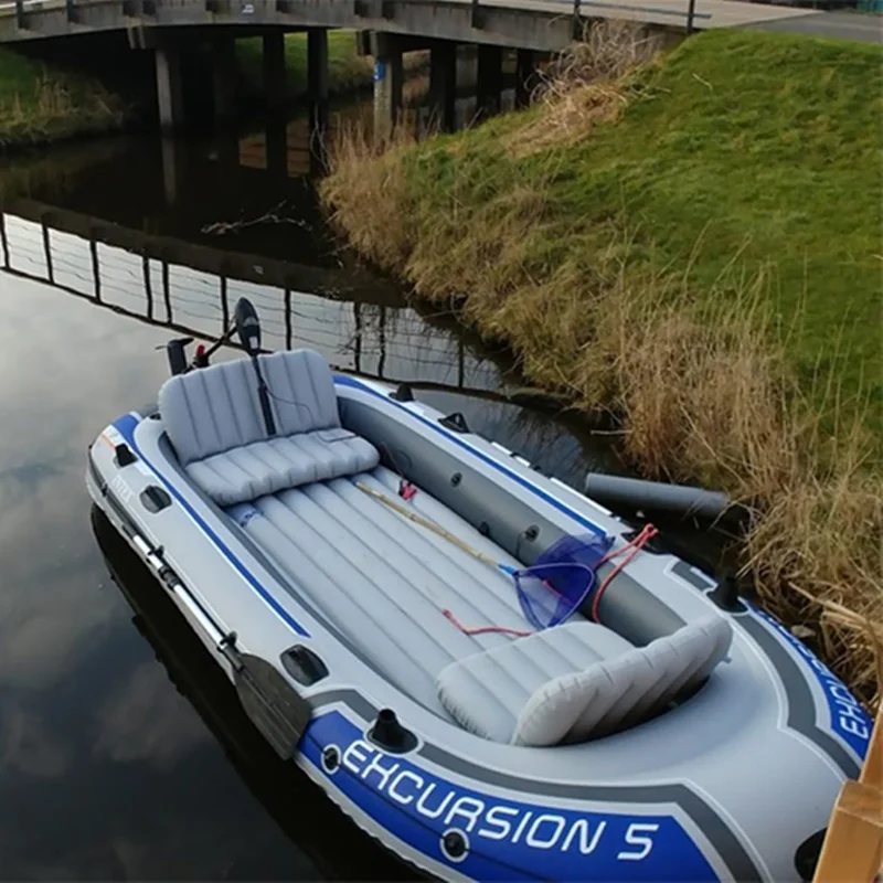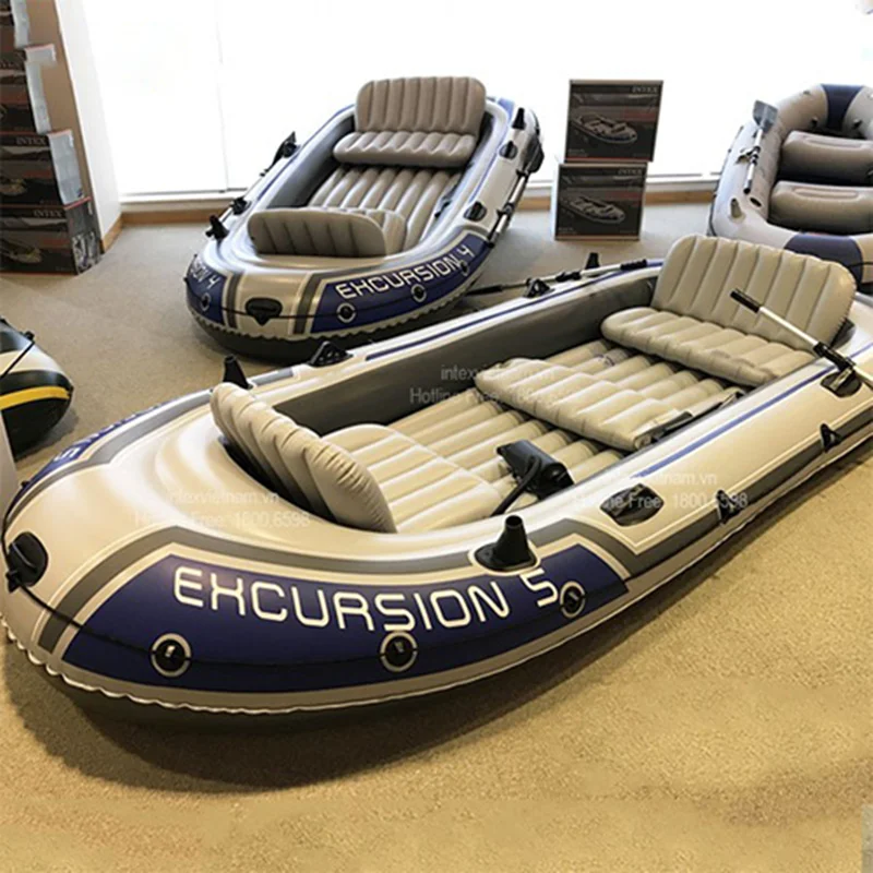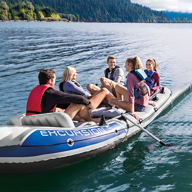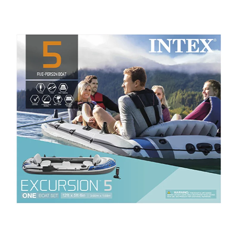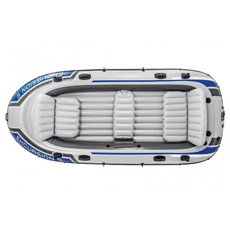 قایق بادی اکسکروشن 5 نفره Intex 68325 مناسب گردش و تفریحات خانوادگی و دوستانه می باشد که از بدنه ای با فضای بزرگ تشکیل شده است. این بدنه راحتی زیادی در داخل خود ایجاد کرده است تا زمان استفاده افراد مشکلی برای آن ها ایجاد نشود. قایق بادی دارای نشیمن و تکیه گاه بادی است و بخش کف آن از ساختاری بادی و مقاوم تشکیل شده است به همین خاطر در فضای آبی دچار مشکل نخواهید شد. ضخامت بدنه در بخش کف و کناره ها زیاد است چرا که مدام در حال ارتباط با آب می باشد و می تواند در مسیر آب حضور پیدا کند. این قایق بادی دارای طناب نجات بر روی بدنه خود می باشد که به وسیله بست بر روی آن ثابت مانده است تا در صورت نیاز از آن استفاده شود.