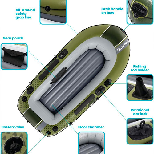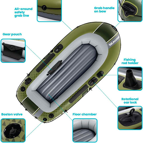قایق بادی سیهاوک 2 اینتکس مدل Seahawk TM 66332 بهترین و خاص ترین قایق بادی شرکت اینتکس است که با طراحی خاص و بی عیب و نقص تولید شده است و می توان با قیمت مناسب آن را خریداری کرد. محصول مورد نظر رنگبندی زیبا و جدید دارد که با مدل های قبلی سیهاک متفاوت می باشد و می تواند توجه عده زیادی را به خود جلب کند. با این شرایط است که افراد زیادی به سمت خرید آن کشیده می شوند و می توانند با پرداخت هزینه مناسب آن را داشته باشند تا در گشت و گذار و ماجراجویی های مختلف از آن بهره مند شوند. قایق بادی مد نظر به همراه خود دارای پمپ باد و پارو می باشد تا دیگر نیازی به تهیه مجزای این موارد نباشد و بتوان به راحتی از این محصول استفاده کرد.