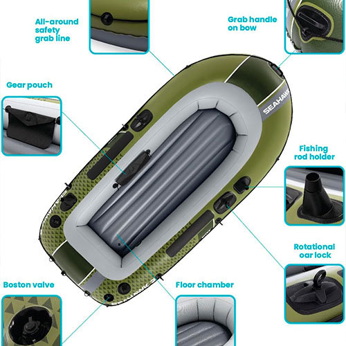 قایق بادی سیهاوک 3 اینتکس مدل Seahawk TM 66333 برای استفاده در محیط های آبی تولید شده است که از کیفیت و کارایی بالا برخوردار است و می توان از آن لذت برد. این محصول برای گشت و گذار و ماجراجویی در محیط های آبی ساخته شده است و ظرفیت سه نفره دارد. در نتیجه تحمل وزن بالا دارد و می توان بدون محدودیت آن را برای سه فرد به طور همزمان استفاده کرد. این محصول طراحی جدید دارد و رنگبندی بدنه نیز جدید می باشد که می توان مورد توجه علاقه مندان قرار گیرد و برای آن ها جذابیت زیادی داشته باشد.