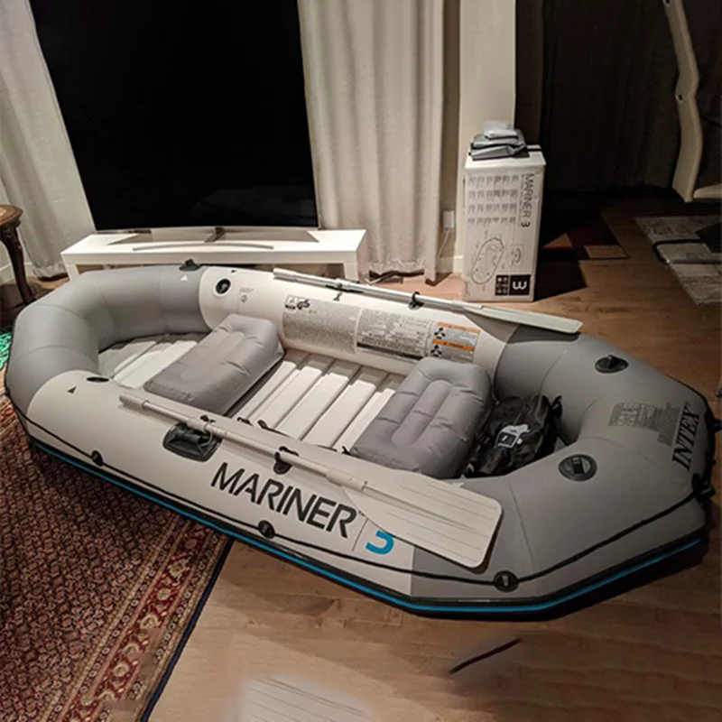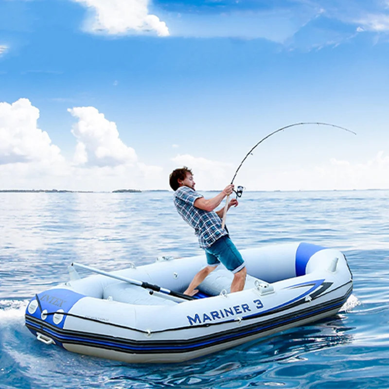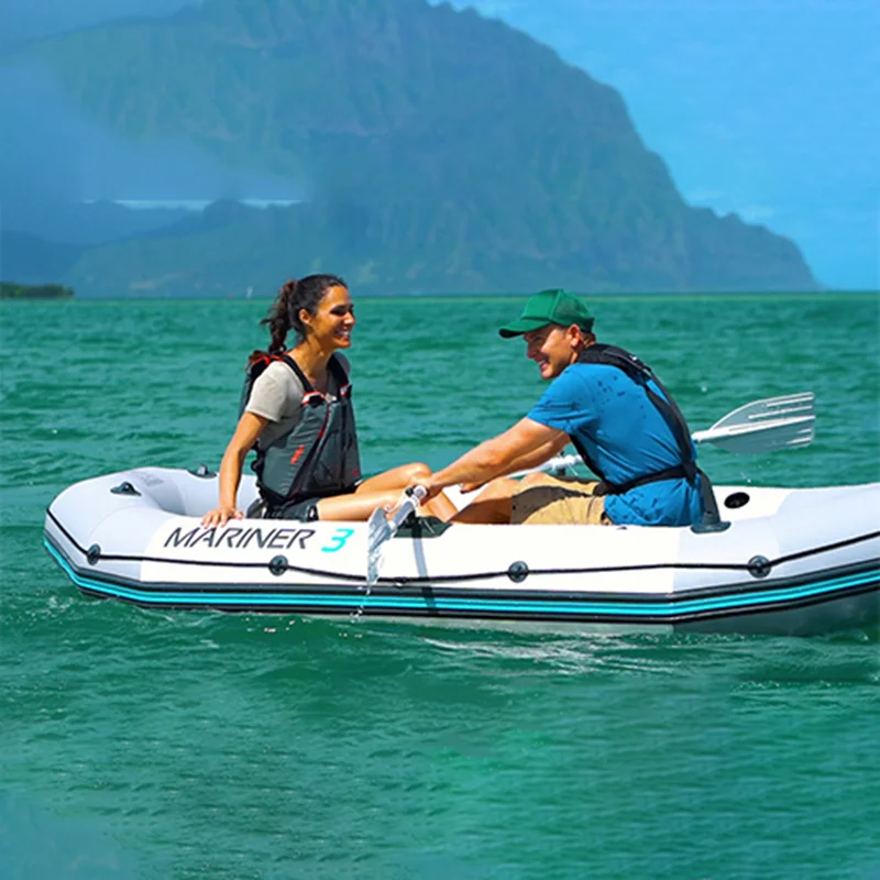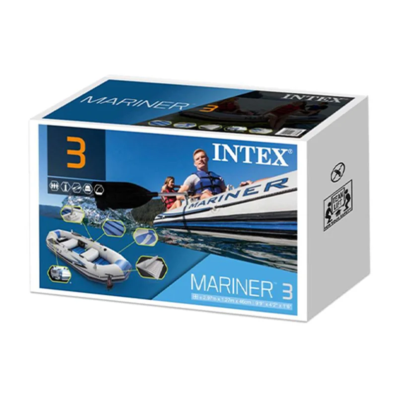 قایق بادی مارینر 3 اینتکس Intex 68373 محبوب ترین و پر فروش ترین قایق بادی است که هم برای گشت و گذار و تفریح از آن استفاده می شود و هم می توان آن را برای مسابقات قایقرانی مورد استفاده قرار داد. بدنه محصول از دوام و طول عمر برخوردار است به طوری که استحکام بالایی از خود نشان می دهد و بر روی سطح آب تعادل لازم را دارد. از این رو کسانی که نگران بر هم خوردن تعادل بر روی سطح آب می شوند و تصور می کنند که بر روی قایق بادی به داخل آب واژگون می شوند می توانند با اطمینان کامل خرید محصول مورد نظر را انجام دهند. این قایق بادی ظرفیت 3 نفره دارد به طوری که از بخش های نشیمن مجزا تشکیل شده است.