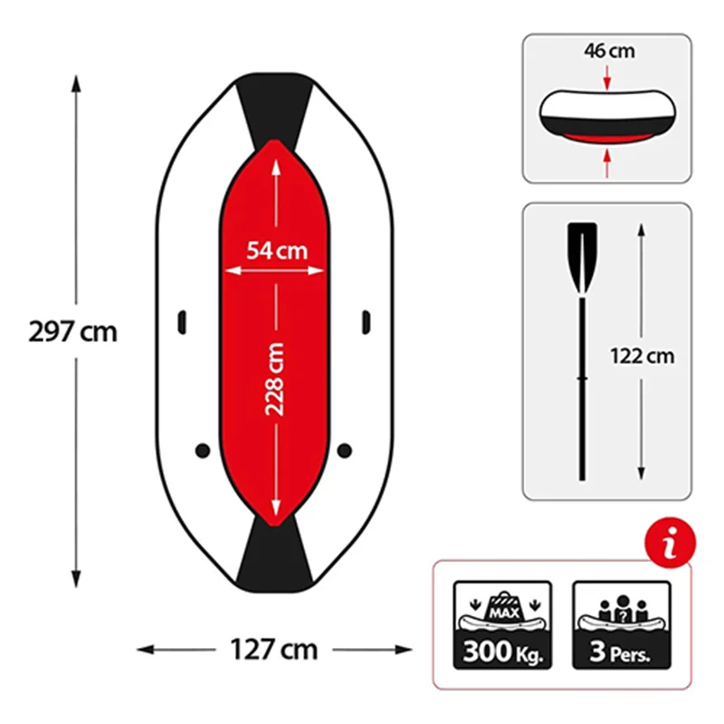 سایر ویژگی ها | دارای دو نشیمنگاه بادی دارای طناب نجات دارای برچسب تعمیرات دارای اهرم ماهیگیری دارای کیسه حمل لوازم کوچک دارای دفترچه راهنما |