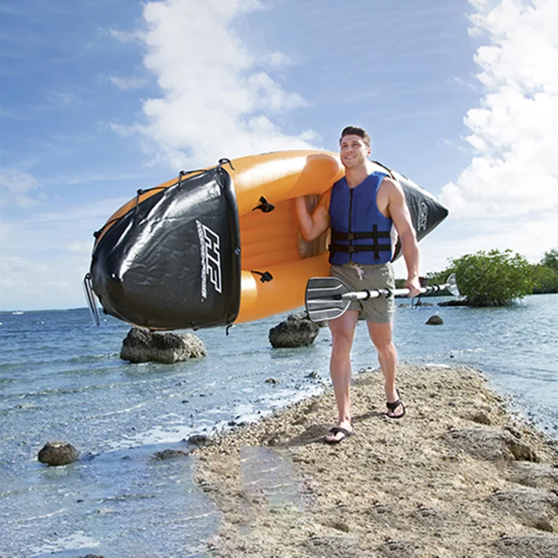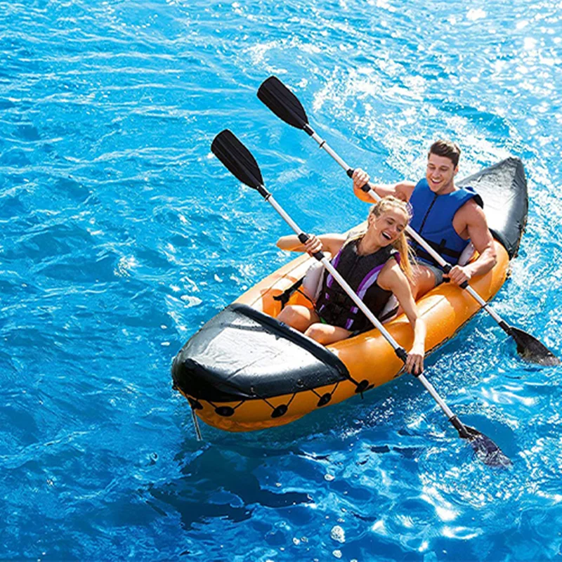 قایق بادی کایاک دو نفره Bestway 65077 بهترین محصول برای استفاده در مسابقات قایقرانی می باشد. چرا که می تواند دارای سرعت و شتاب زیادی باشد و در تمامی آب ها خصوصا آب دریا مورد استفاده قرار گیرد. این محصول را می توان با خود به همراه داشت و مسیر های زیادی را طی کرد تا به موقعیت دلخواه رسید و استفاده از آن را انجام داد. بدنه برای استفاده در آب دریا بسیار مناسب است. چرا که دارای ضخامت زیاد است و در برابر حرکات آب و مواردی که در داخل آب موجود است مقاومت زیادی دارد. همچنین می تواند سرعت بالایی را از خود نشان دهد به طوری که حرکات آب و موج ها مانع از حرکت آن نمی شوند.
