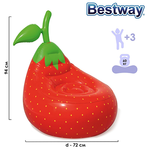مبل بادی کودک طرح توت فرنگی Bestway 75066 از طراحی زیبا برخوردار است که در نتیجه کودکان می توانند به سمت استفاده از آن جذب شوند. این محصول از بدنه ای بزرگ و جادار تشکیل شده است که نوجوانان نیز قادر به استفاده از آن می باشند .در طراحی محصول تکیه گاهی بلند قرار دارد که می تواند محلی برای قرار دادن کمر باشد. از این رو افراد در زمان استفاده از محصول مشکلی نخواهند داشت و در راحت ترین حالت ممکن حضور پیدا خواهند کرد. بخش نشیمن از ساختاری موجدار تشکیل شده است که برای ایجاد راحتی بیش تر در نظر گرفته شده است.