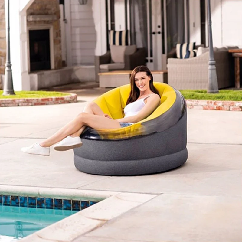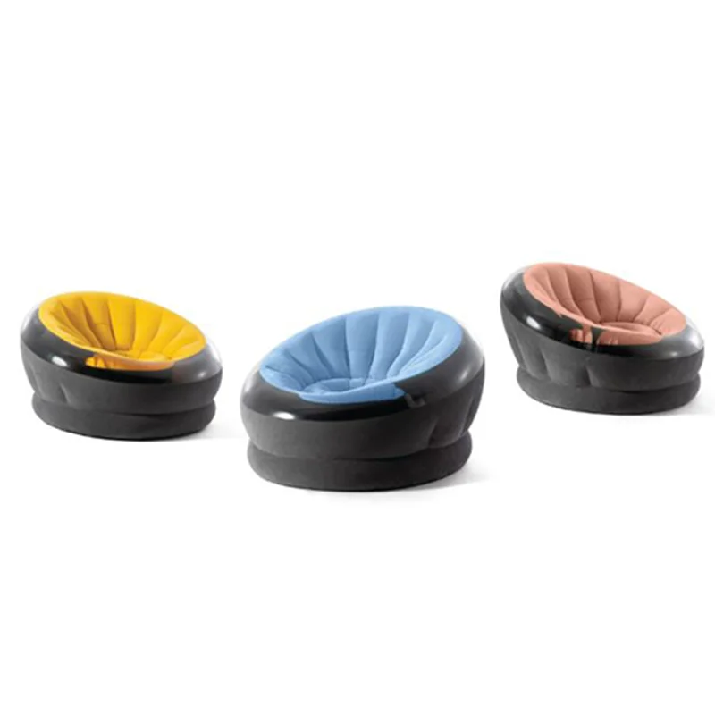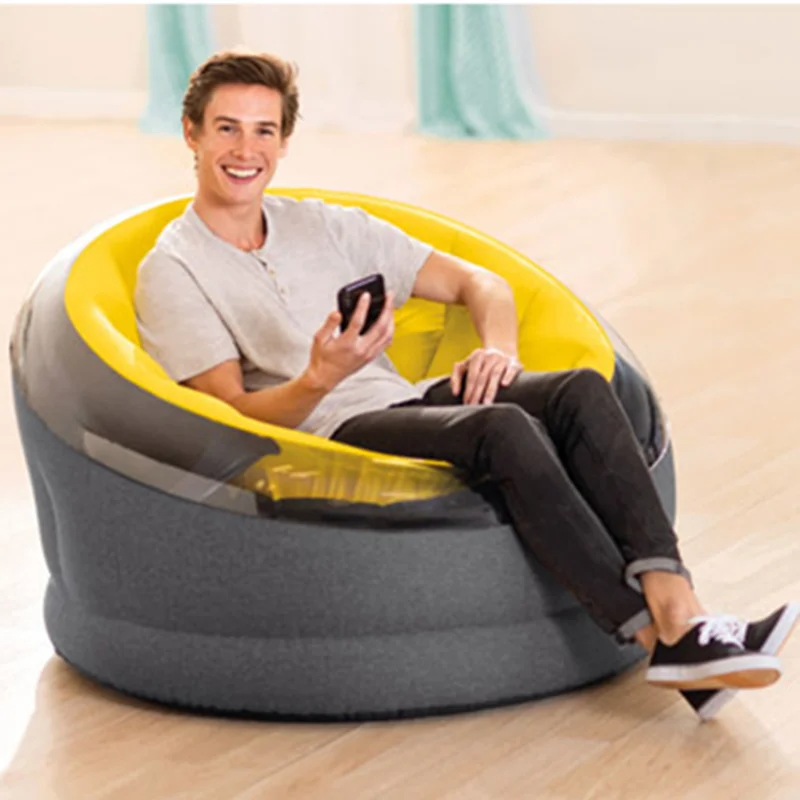 مبل بادی یک نفره صدفی زرد جدید هم یکی دیگر از سه رنگ جذابی است که فروشگاه اینتکس سعی کرده تا این محصول را ارائه کرده و با قیمت عالی آن را روانه بازار کند. طراحی صورت گرفته در این محصول به گونه ای است که قطعا افراد بزرگسال و حتی نوجوانان و جوانان نیز می توانند به بهترین شکل ممکن اقدام به خرید و استفاده از این محصول کنند. در همین رابطه باید اشاره داشته باشیم که از نظر نوع رنگ بندی ، این مبل بادی دارای رویه ای یکدست زرد رنگ می باشد. در واقع این رنگ زرد بر روی بخش نشیمنگاه این محصول قرار دارد و نواحی کناری و کف این مبل نیز از رنگ تیره و مشکی طراحی شده است که در واقع این تضار رنگی روشن و تیره باعث جذابیت دو چندان این محصول گردیده است. هم چنین باید اشاره کنیم که از نظر جنس و کیفیت نیز این محصول ساختاری از نوع PVC مخمل دارد که دارای ساختاری دو لایه بوده و بسیار ضخیم و بادوام می باشد.