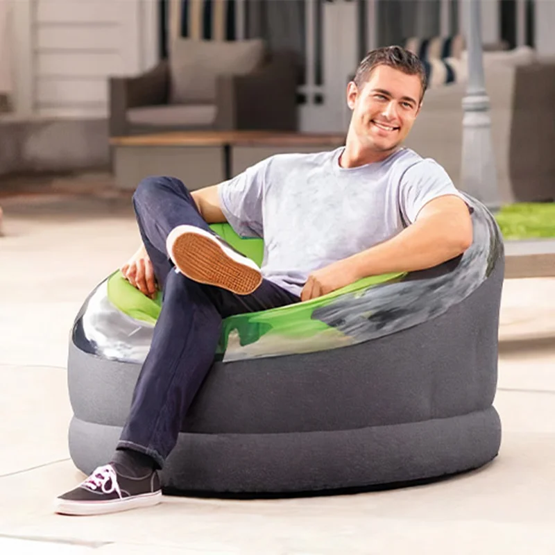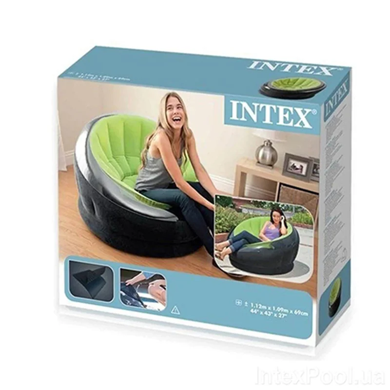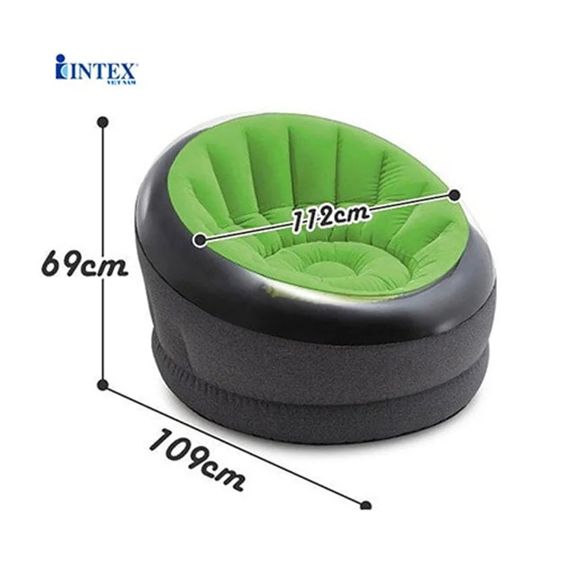 مبل بادی یک نفره صدفی سبز intex 66582 یکی از جذاب ترین انواع مبل بادی لوکس یک نفره بوده که برای استفاده رده سنی بزرگسال با ساختاری جدید و زیبا و کیفیت فوق العاده بالا توسط برند اینتکس طراحی و با قیمتی مقرون به صرفه روانه بازار شده است. این محصول ساختاری گرد داشته و وزن بدنه آن تنها 3 کیلوگرم بوده که موجب می شود در زمان رفتن به سفر نیز بتوانید آن را به همراه ببرید. البته این وزن کم تاثیری بر دوام بدنه محصول نداشته و مبل بادی یک نفره صدفی سبز intex 66582 قادر بوده وزنی بالغ بر 100 کیلوگرم را به صورت مدوام بر روی خود تحمل کند. این مبل بادی کیفیت بدنه فوق العاده بالایی داشته و می توانید در تمامی محیط های باز و یا سرپوشیده به خیالی آسوده از آن استفاده کرده و لذت ببرید.